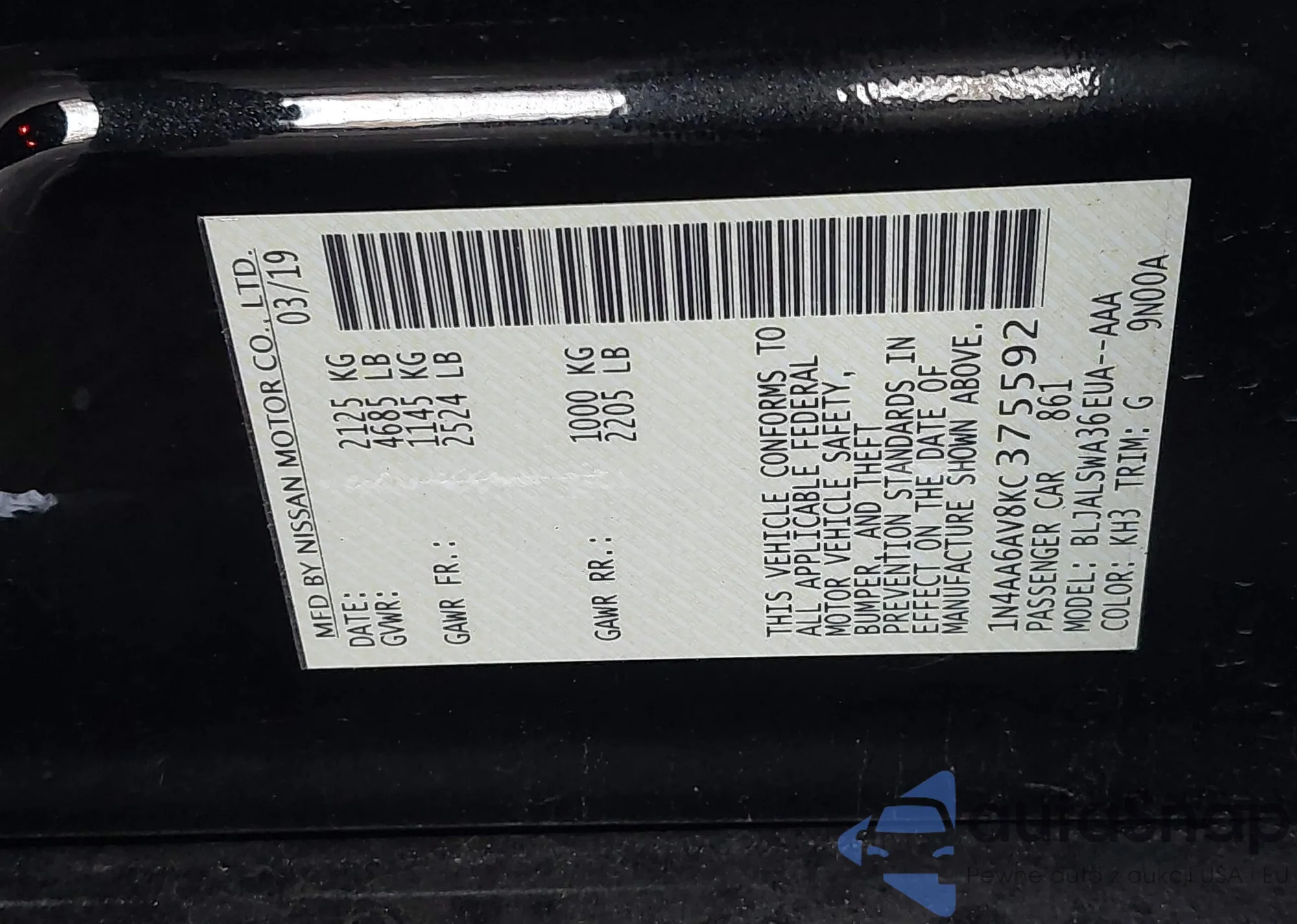 VIN: 1N4AA6AV8KC375592