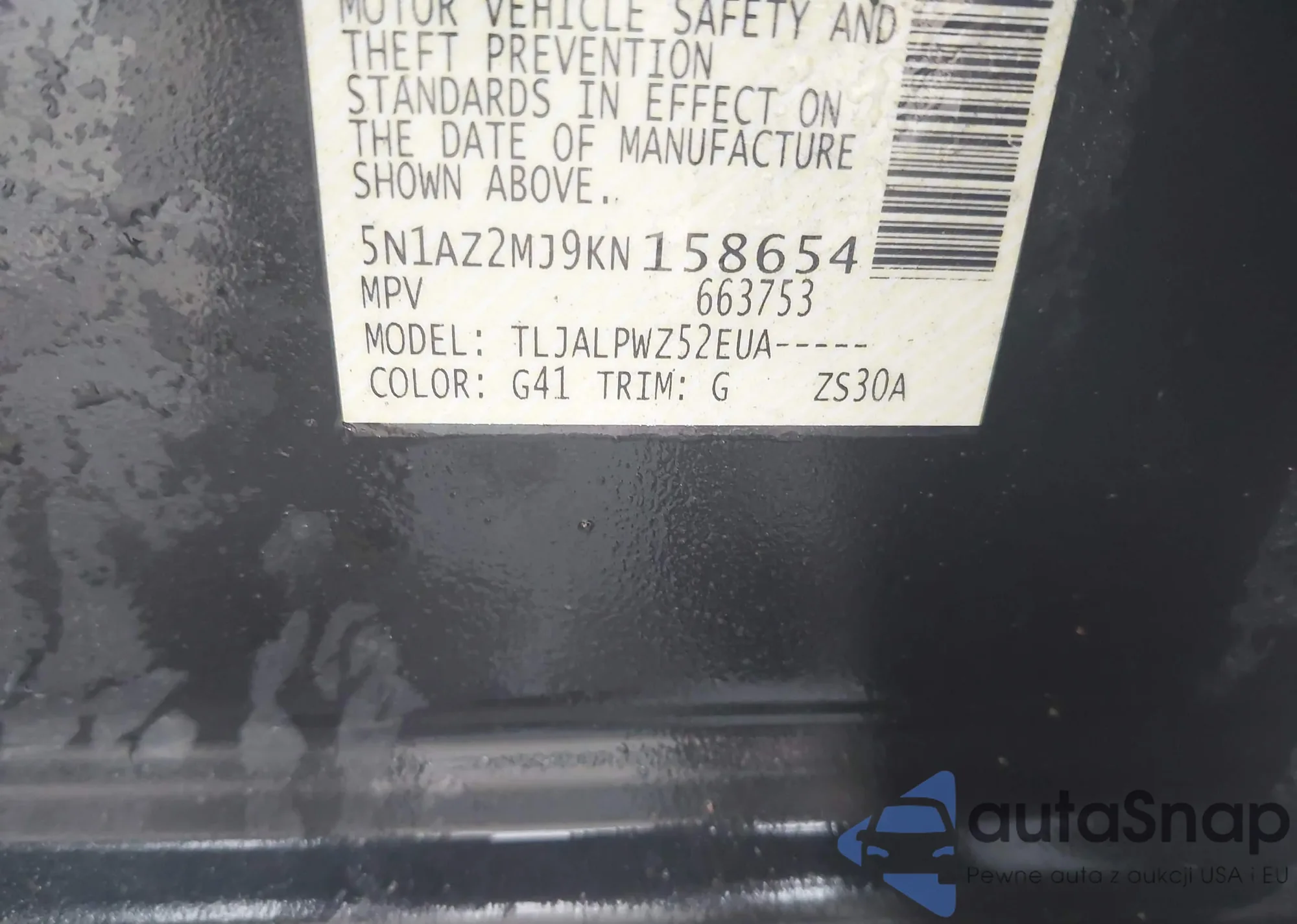VIN: 5N1AZ2MJ9KN158654
