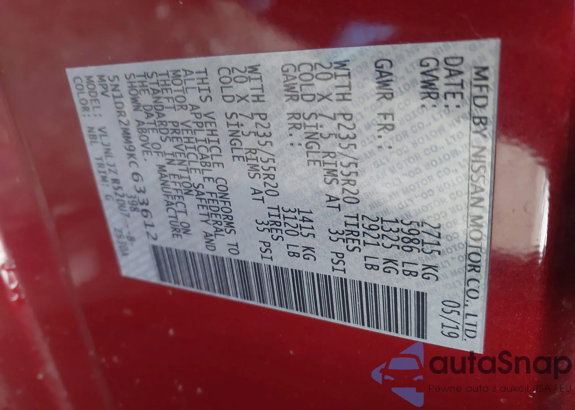 VIN: 5N1DR2MM9KC633612