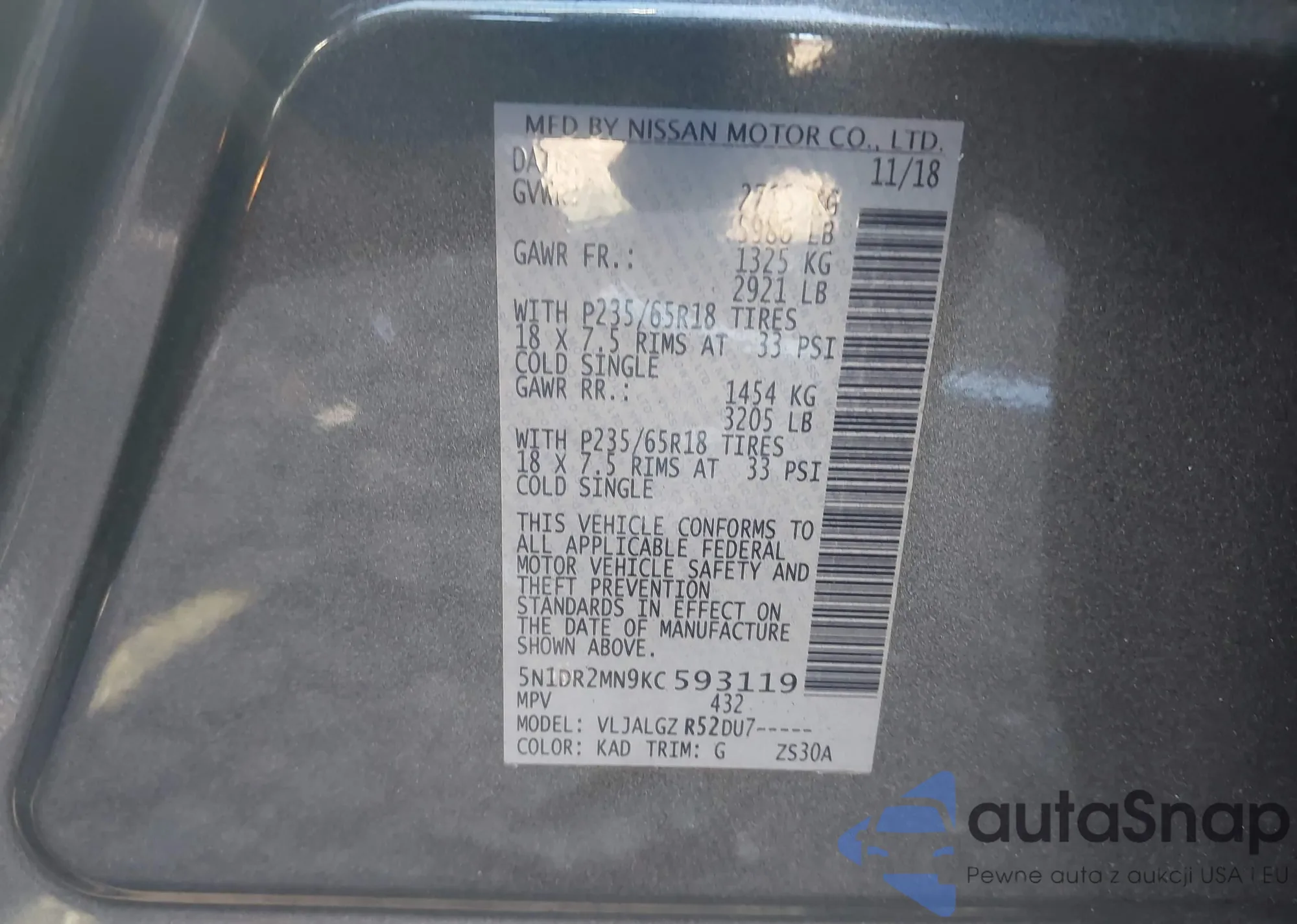 VIN: 5N1DR2MN9KC593119