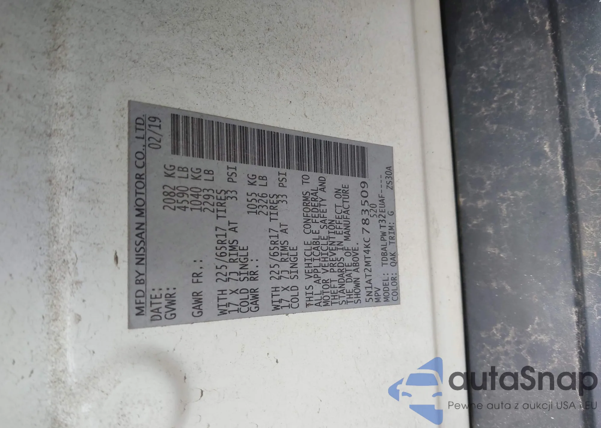VIN: 5N1AT2MT4KC783509