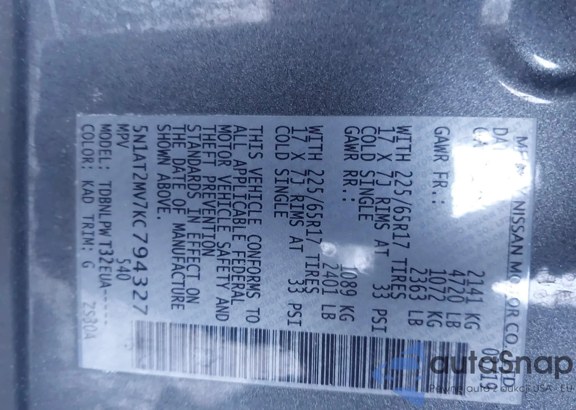 The car Nissan Rogue 2019 (VIN 5N1AT2MV7KC794327) has not been auctioned before. The documents are clean, and the mileage matches or is below the market average. Sold by an insurance company – we recommend purchase. Delivery to the port will take approx. 6–8 weeks.