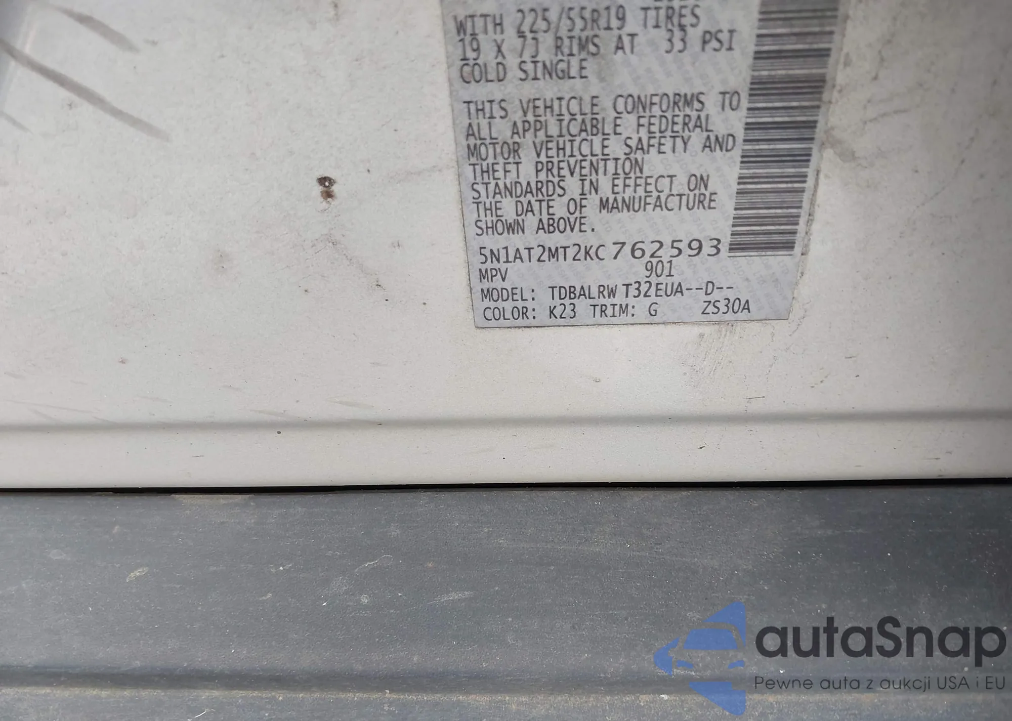 VIN: 5N1AT2MT2KC762593