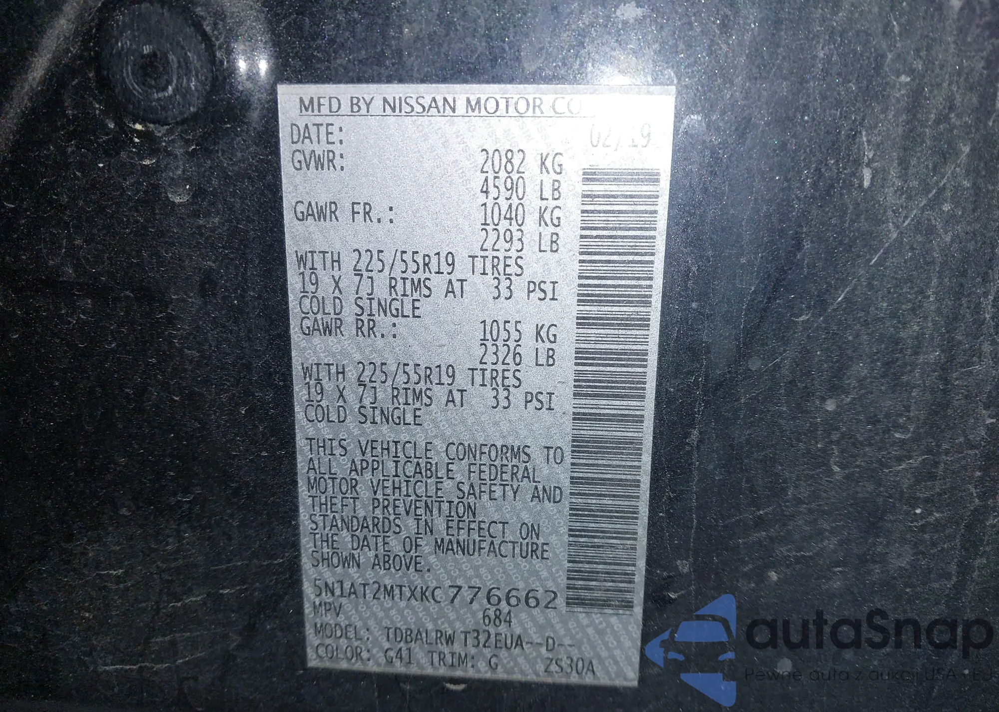 VIN: 5N1AT2MTXKC776662