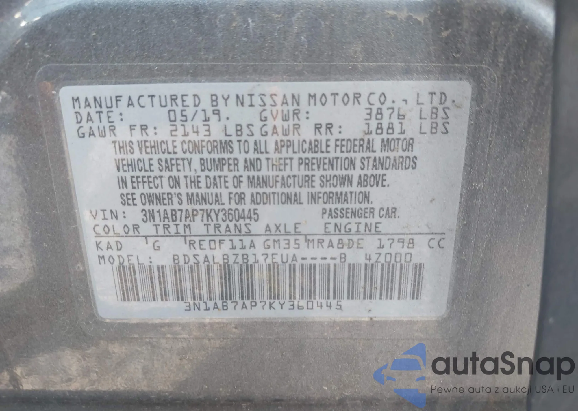 VIN: 3N1AB7AP7KY360445