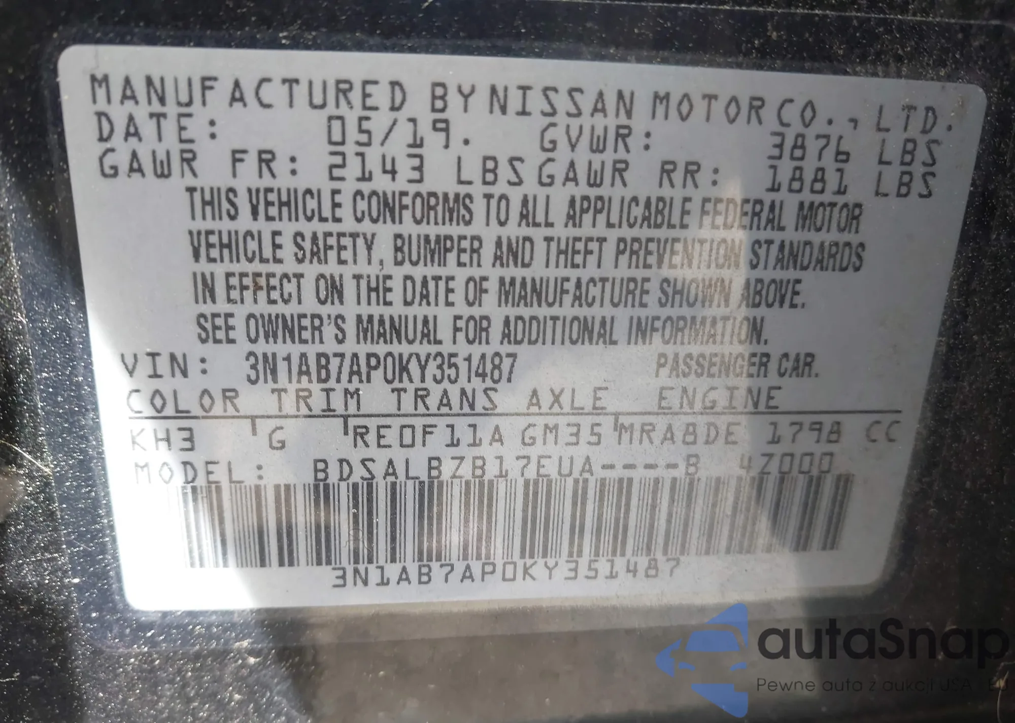 VIN: 3N1AB7AP0KY351487