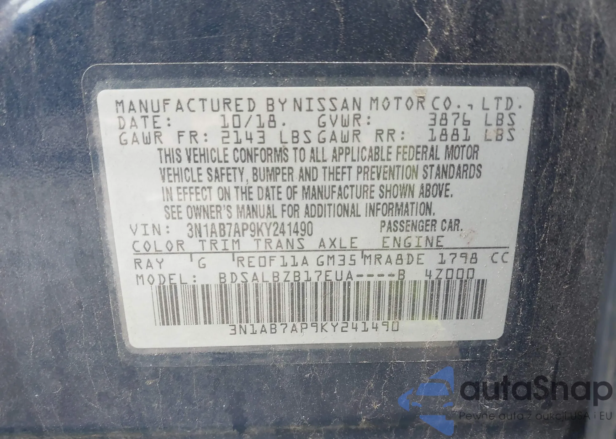 VIN: 3N1AB7AP9KY241490