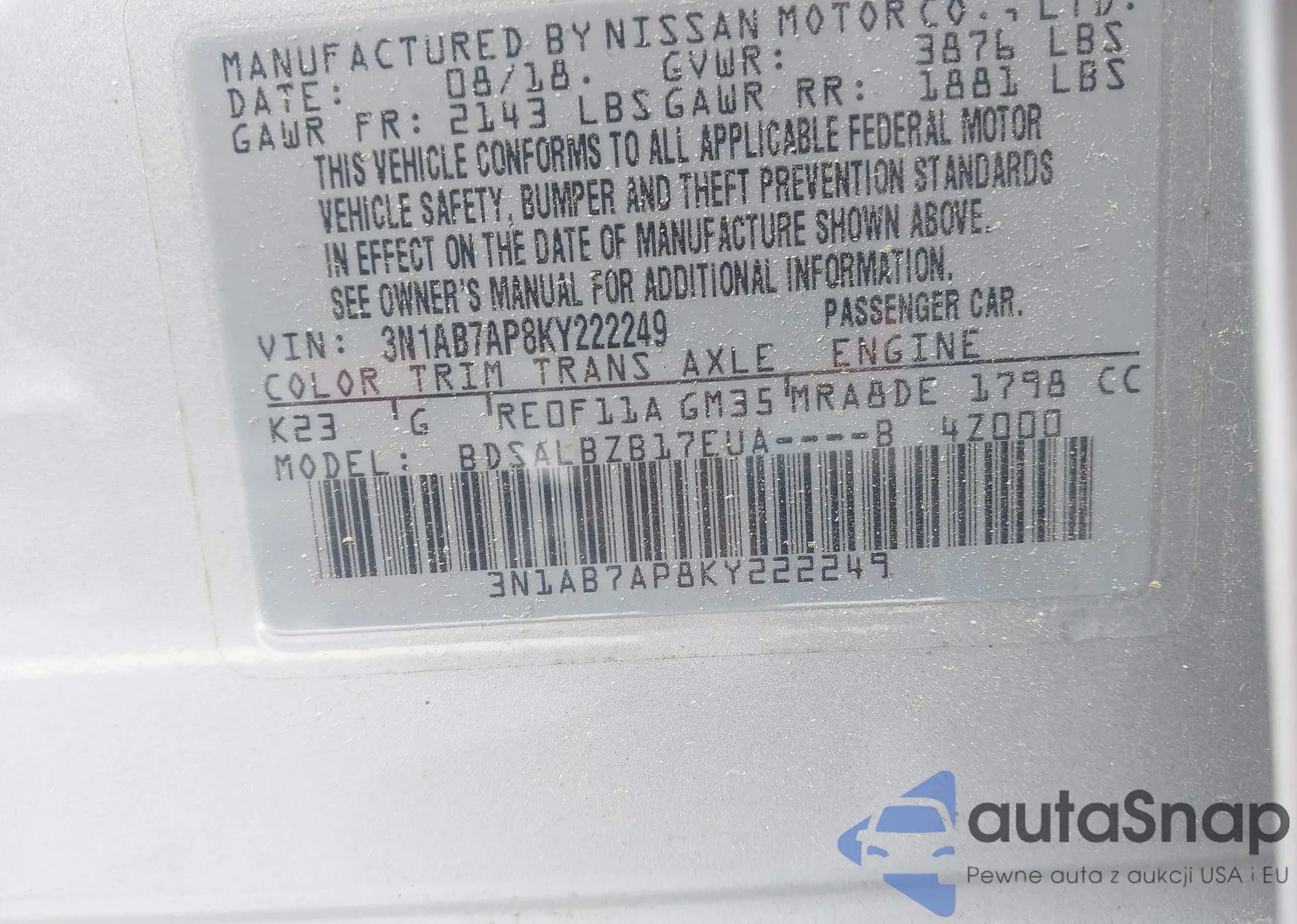 VIN: 3N1AB7AP8KY222249