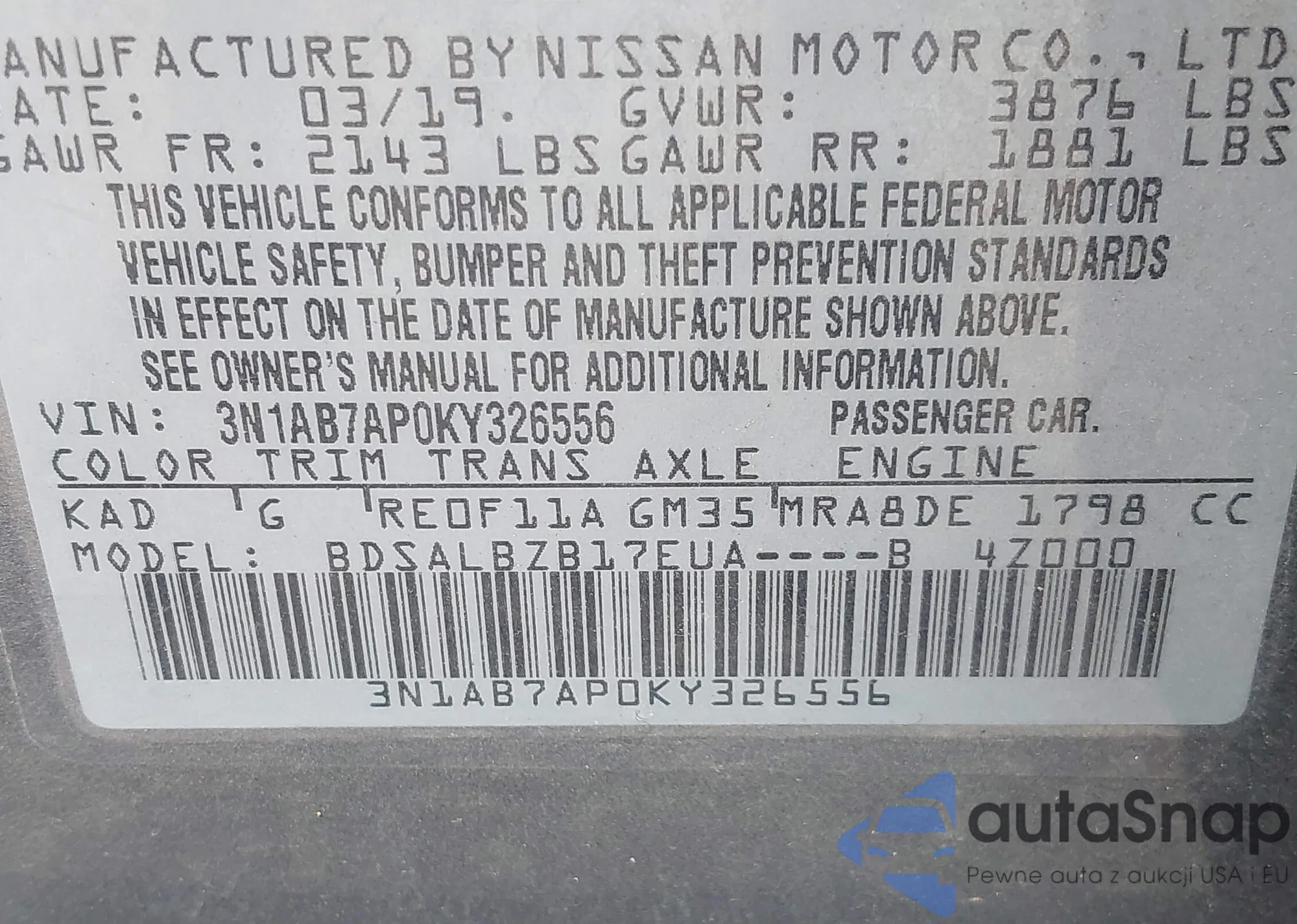 VIN: 3N1AB7AP0KY326556