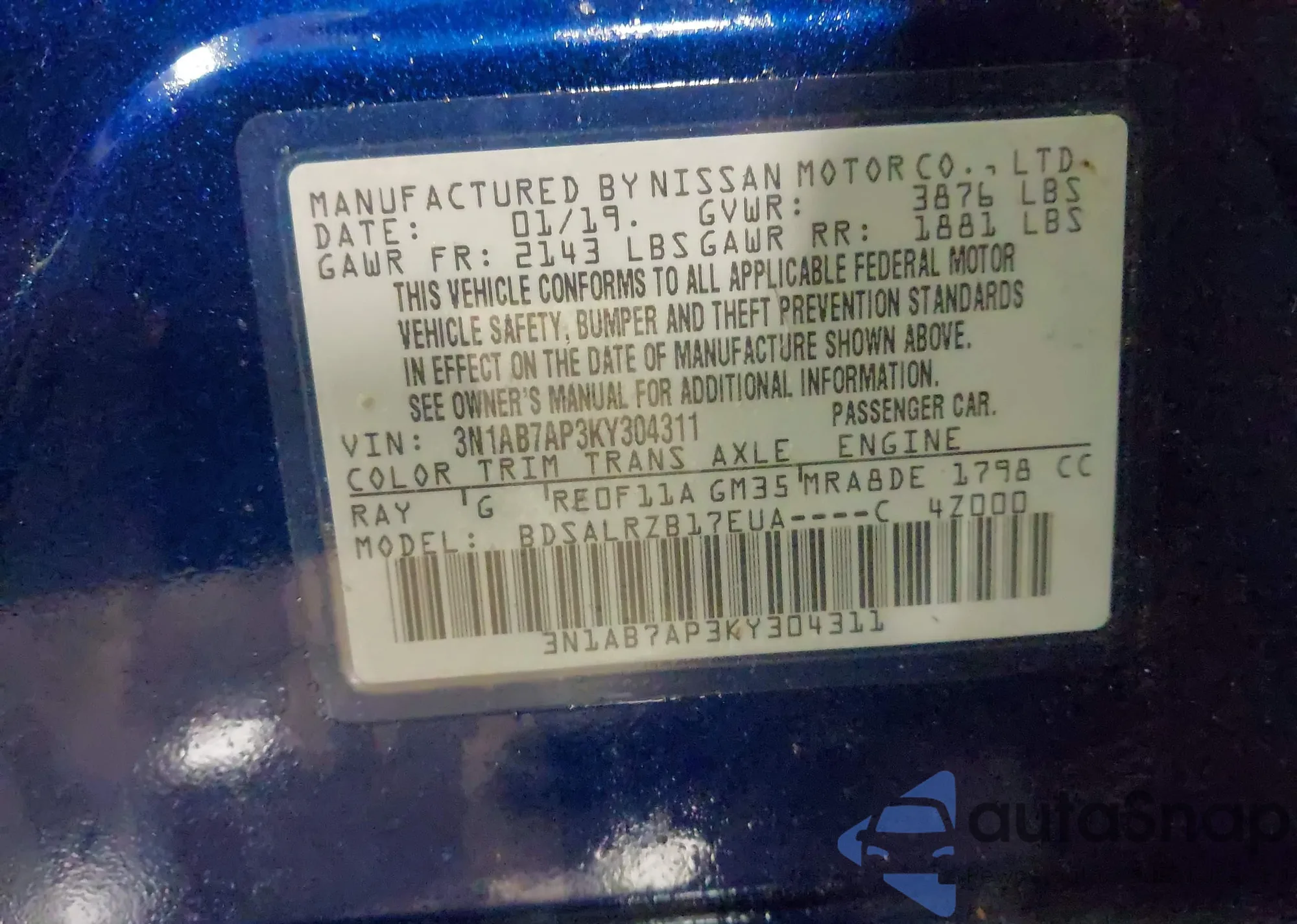 The car Nissan Sentra 2019 (VIN 3N1AB7AP3KY304311) has not been auctioned before. The documents are clean, and the mileage matches or is below the market average. Sold by an insurance company – we recommend purchase. Delivery to the port will take approx. 6–8 weeks.