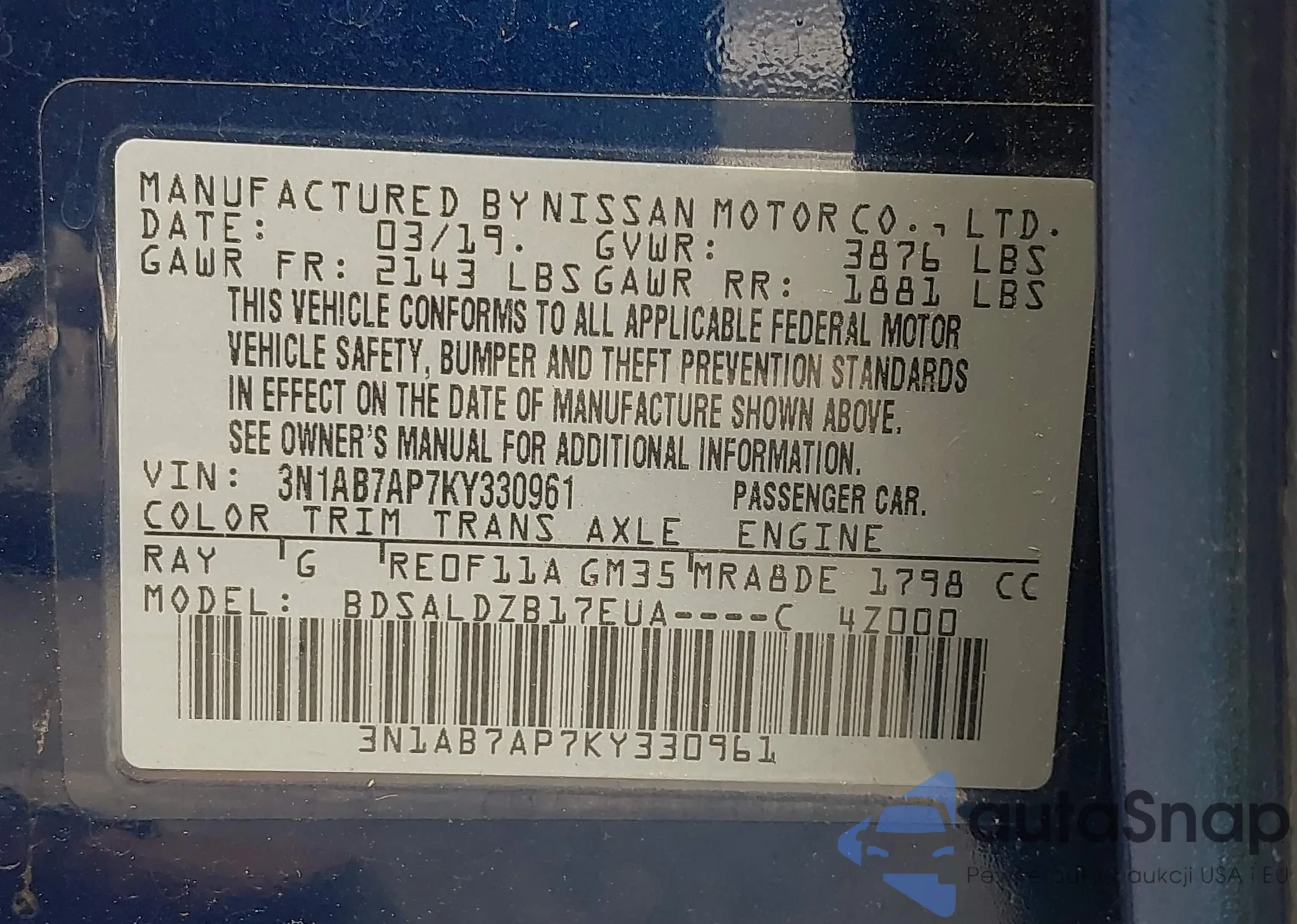 VIN: 3N1AB7AP7KY330961