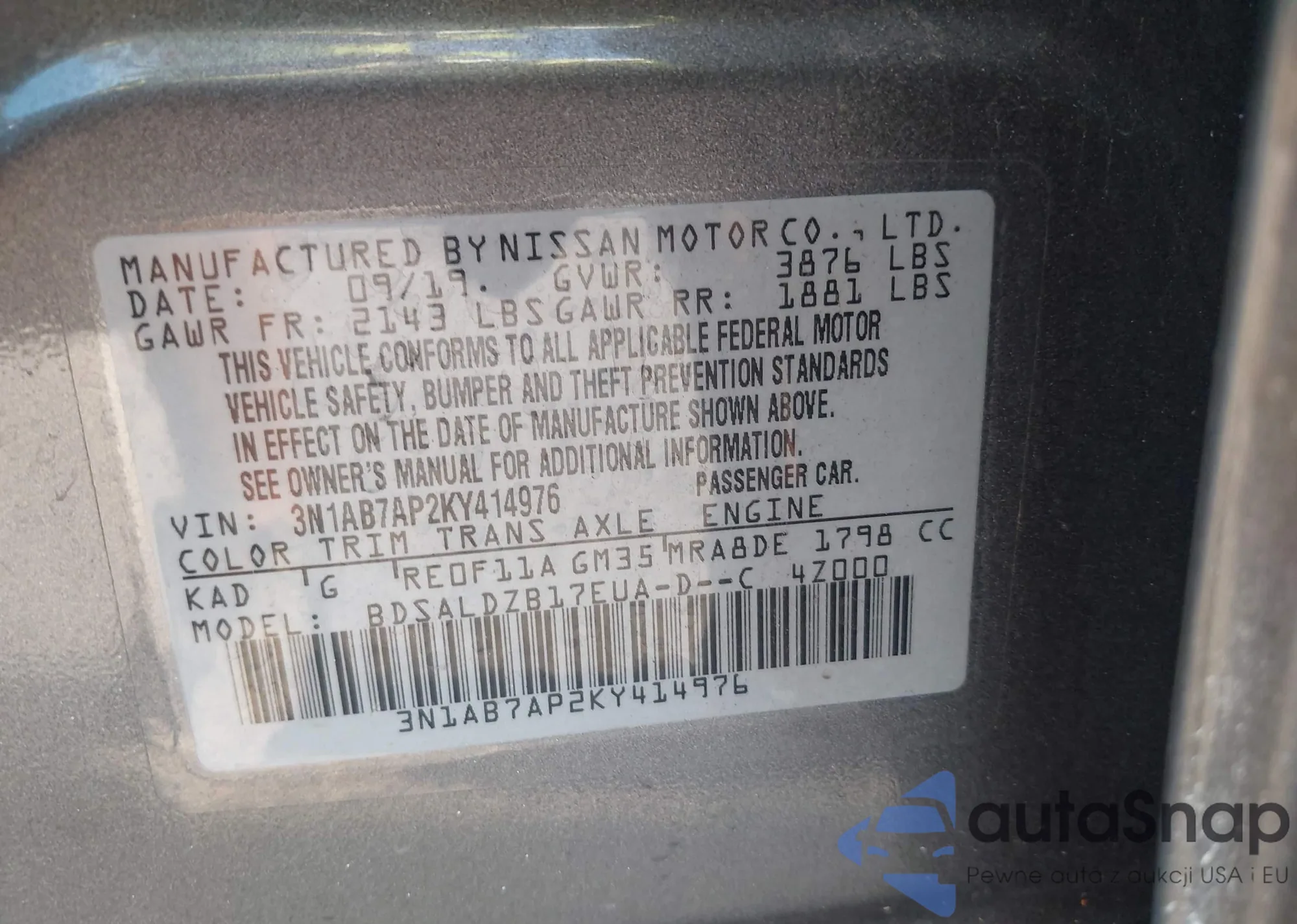 VIN: 3N1AB7AP2KY414976