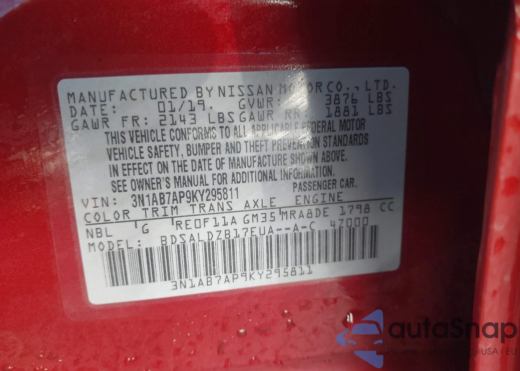 VIN: 3N1AB7AP9KY295811