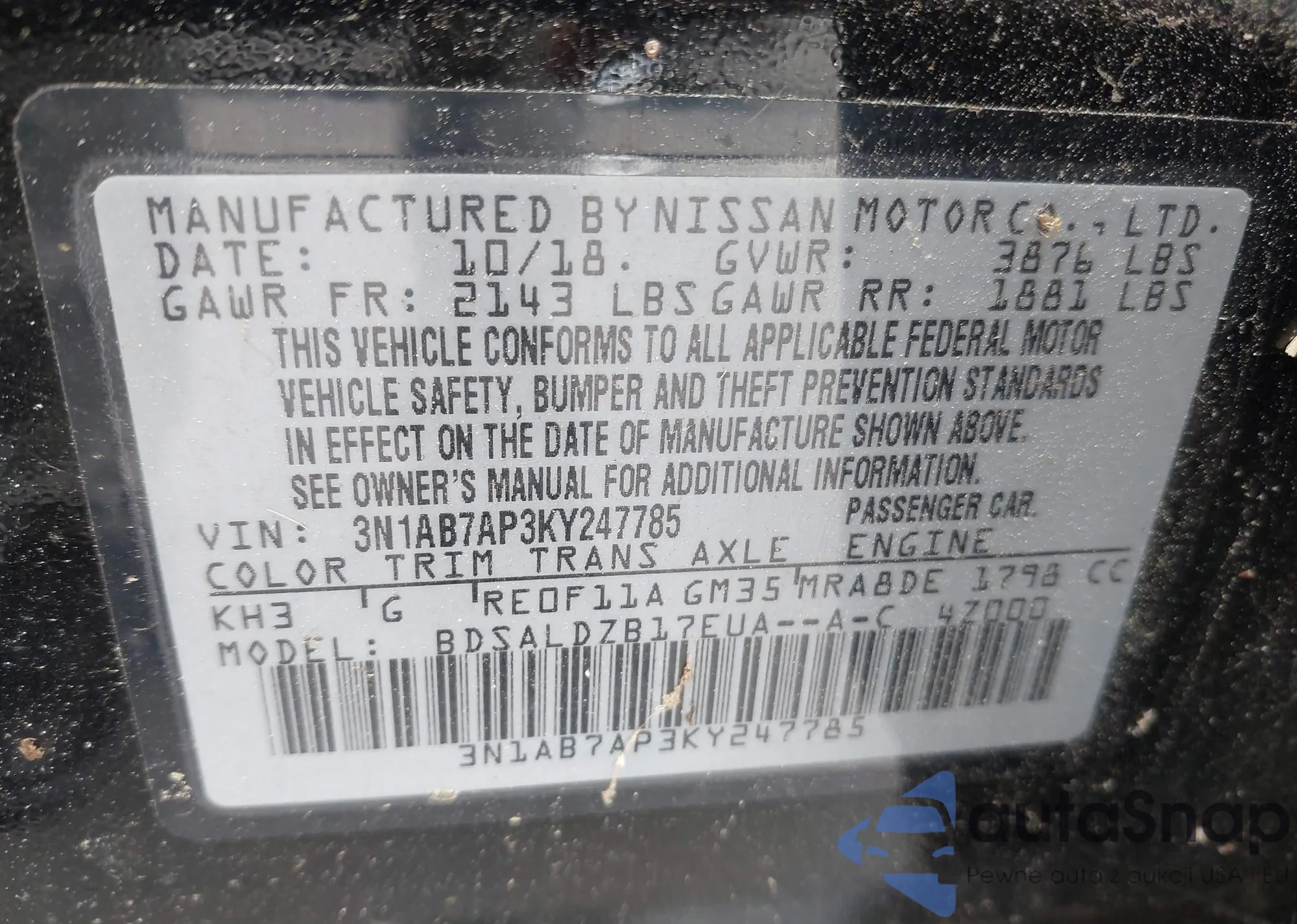 VIN: 3N1AB7AP3KY247785
