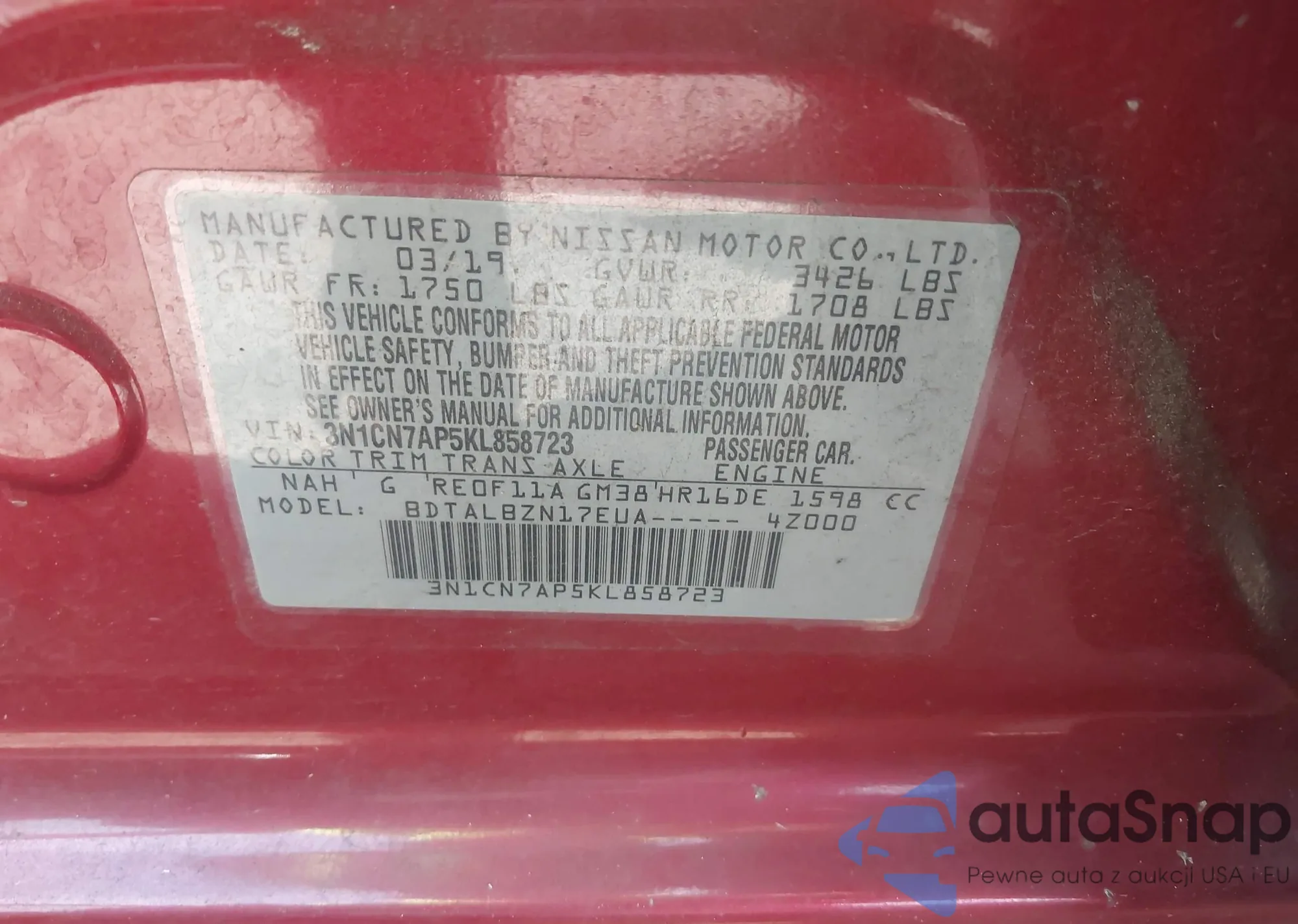 VIN: 3N1CN7AP5KL858723