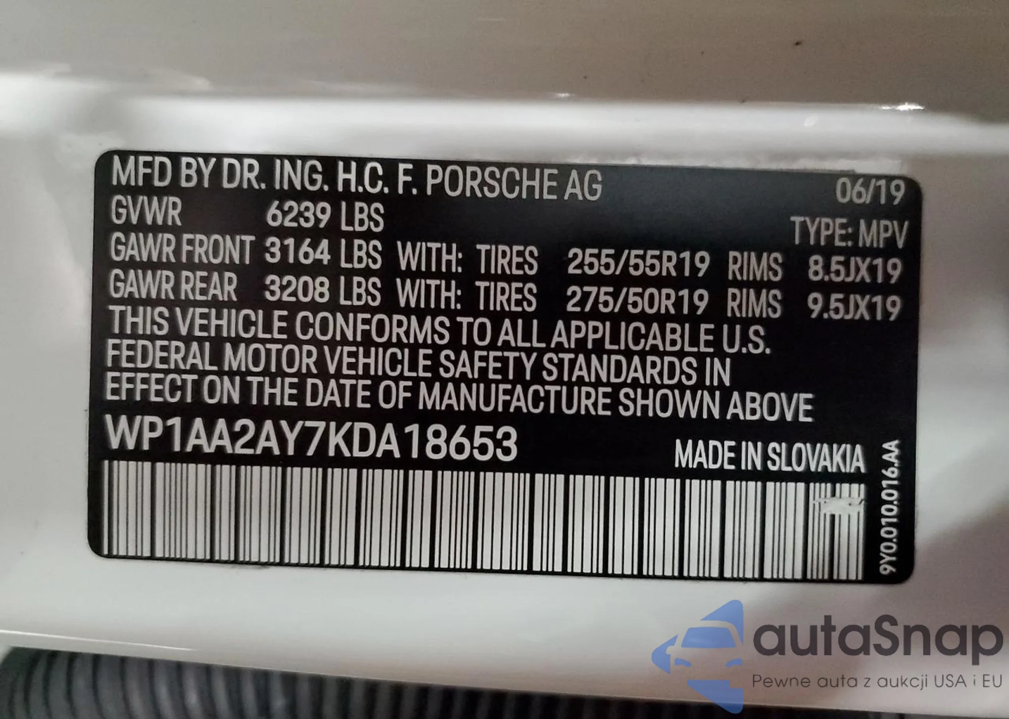 The car Porsche Cayenne 2019 (VIN WP1AA2AY7KDA18653) has already been auctioned 0 times or is sold by an unverified seller. We recommend checking the Carfax report and confirming registration possibilities before purchase.