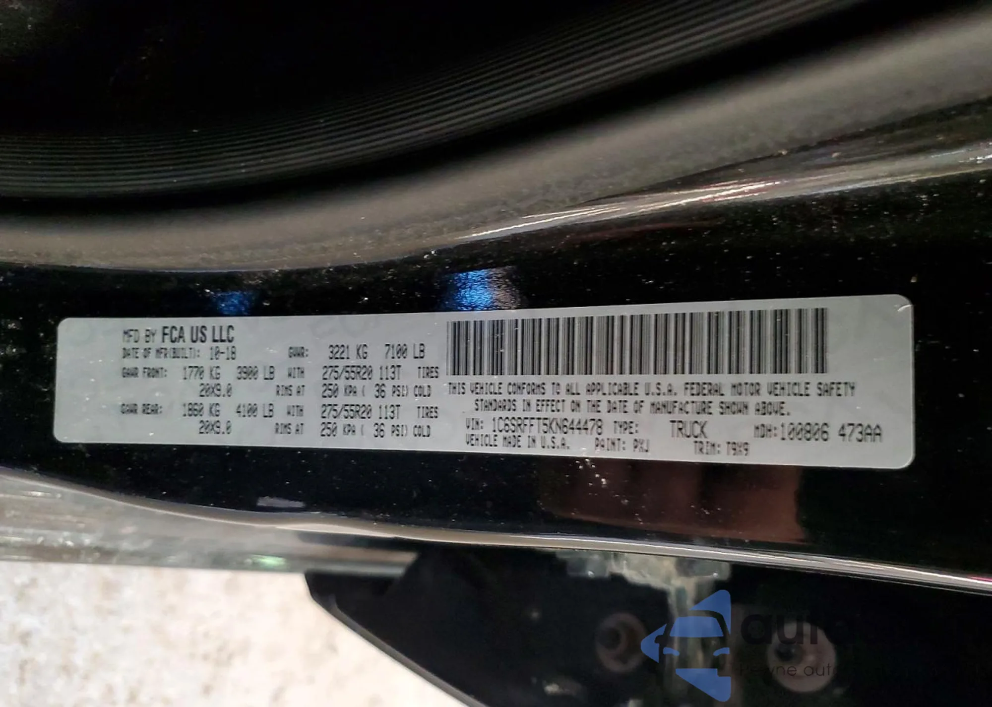 The car RAM 1500 2019 (VIN 1C6SRFFT5KN644478) has not been auctioned before. The documents are clean, and the mileage matches or is below the market average. Sold by an insurance company – we recommend purchase. Delivery to the port will take approx. 6–8 weeks.