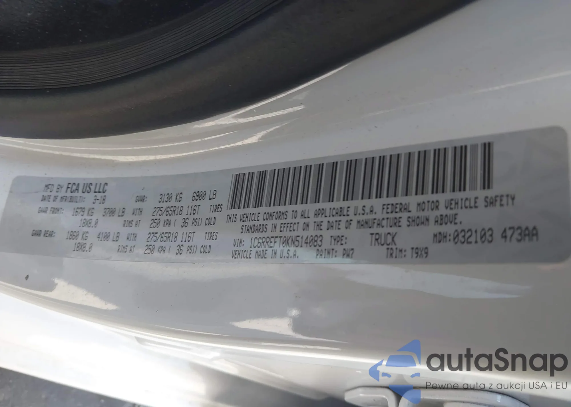 VIN: 1C6RREFT0KN514083