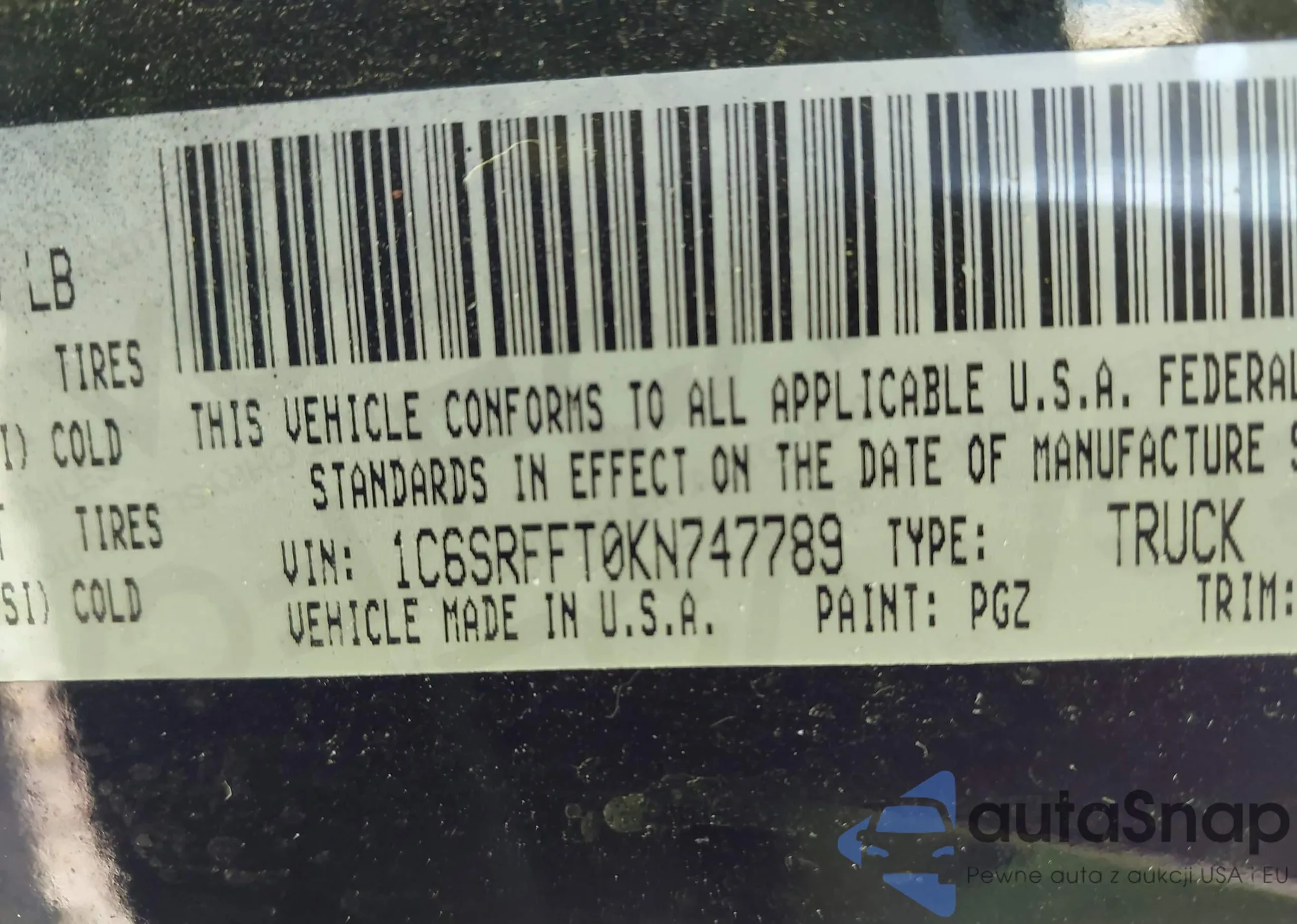 VIN: 1C6SRFFT0KN747789
