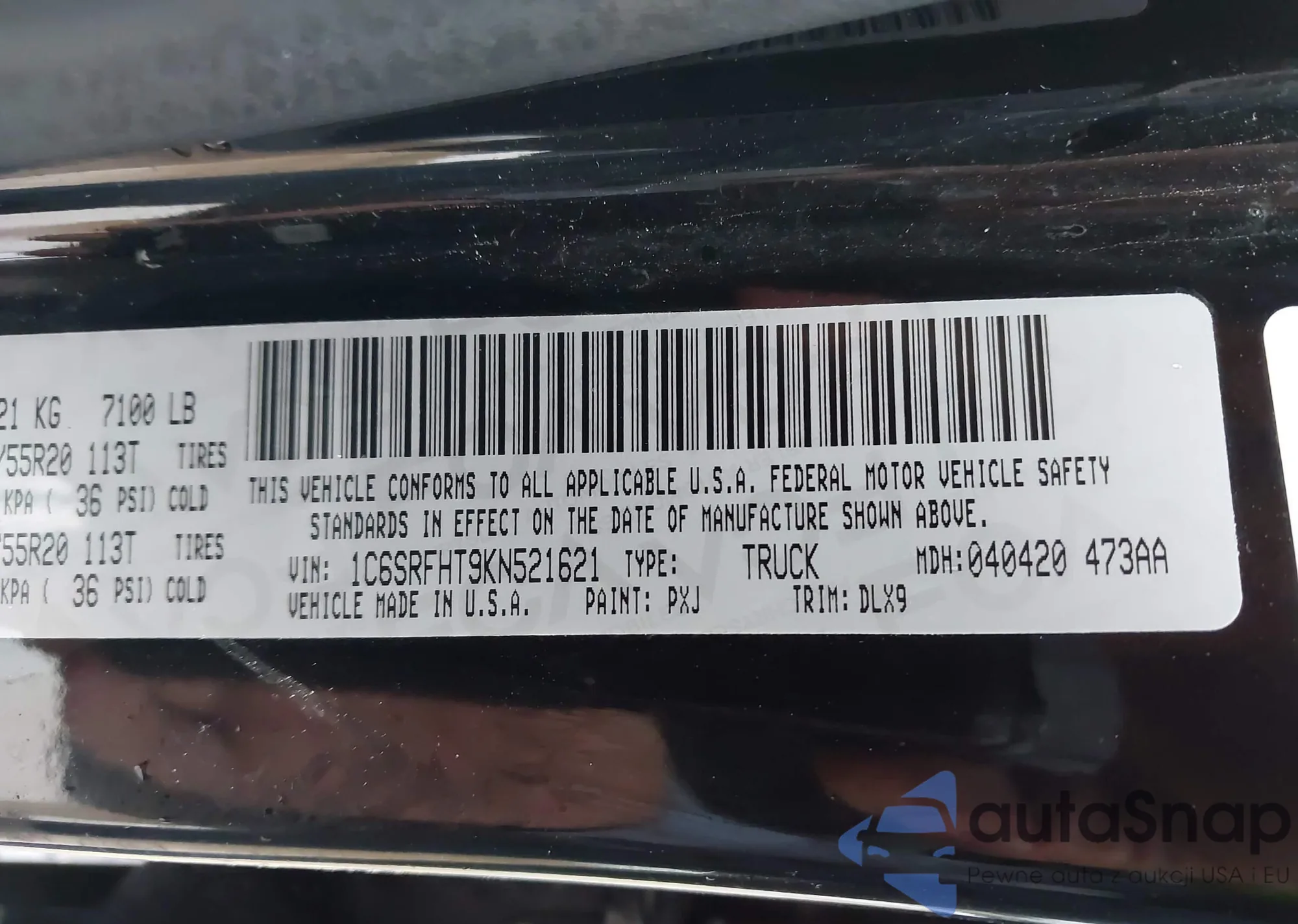 The car RAM 1500 2019 (VIN 1C6SRFHT9KN521621) has not been auctioned before. The documents are clean, and the mileage matches or is below the market average. Sold by an insurance company – we recommend purchase. Delivery to the port will take approx. 6–8 weeks.
