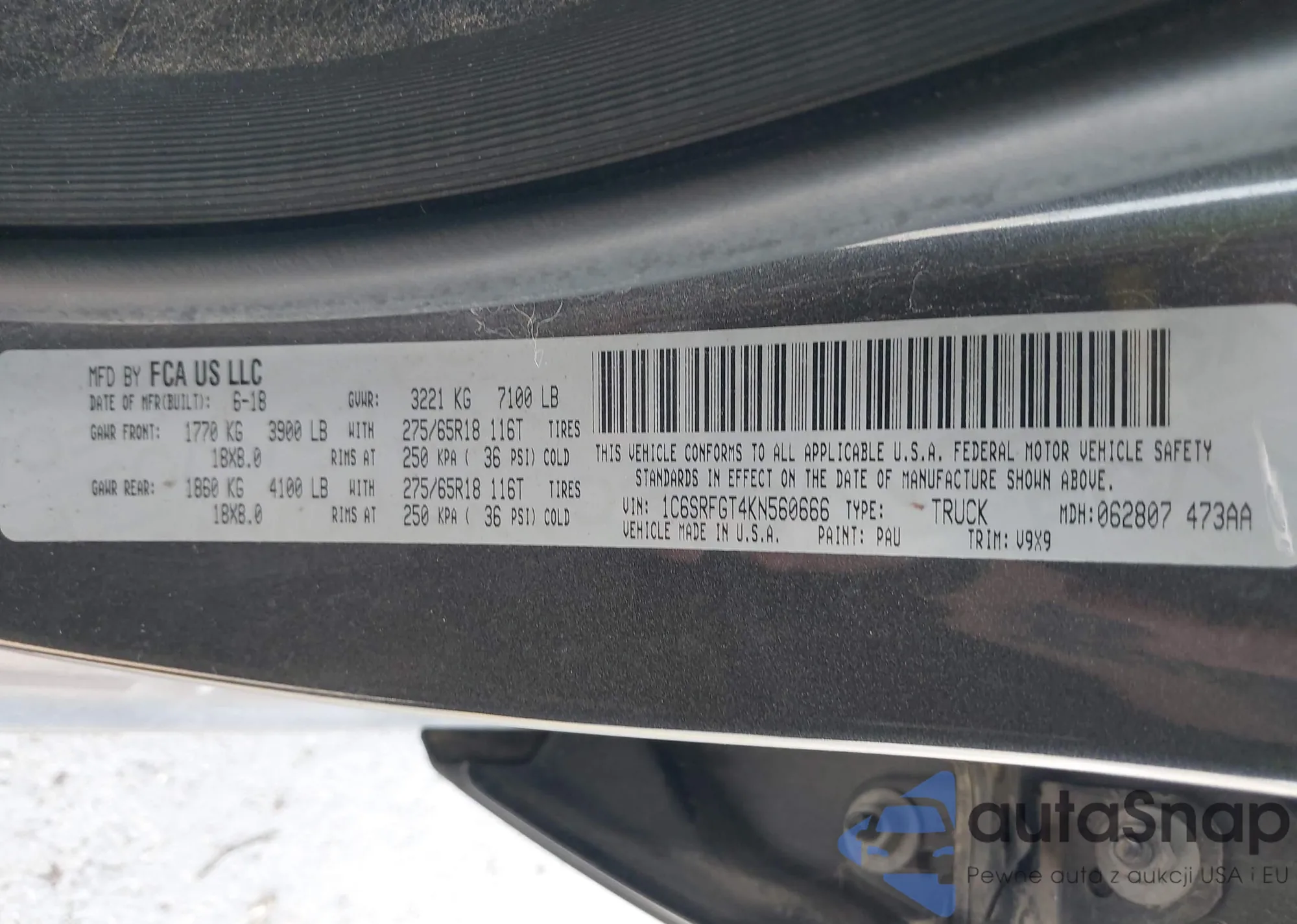 • VIN: 1C6SRFGT4KN560666