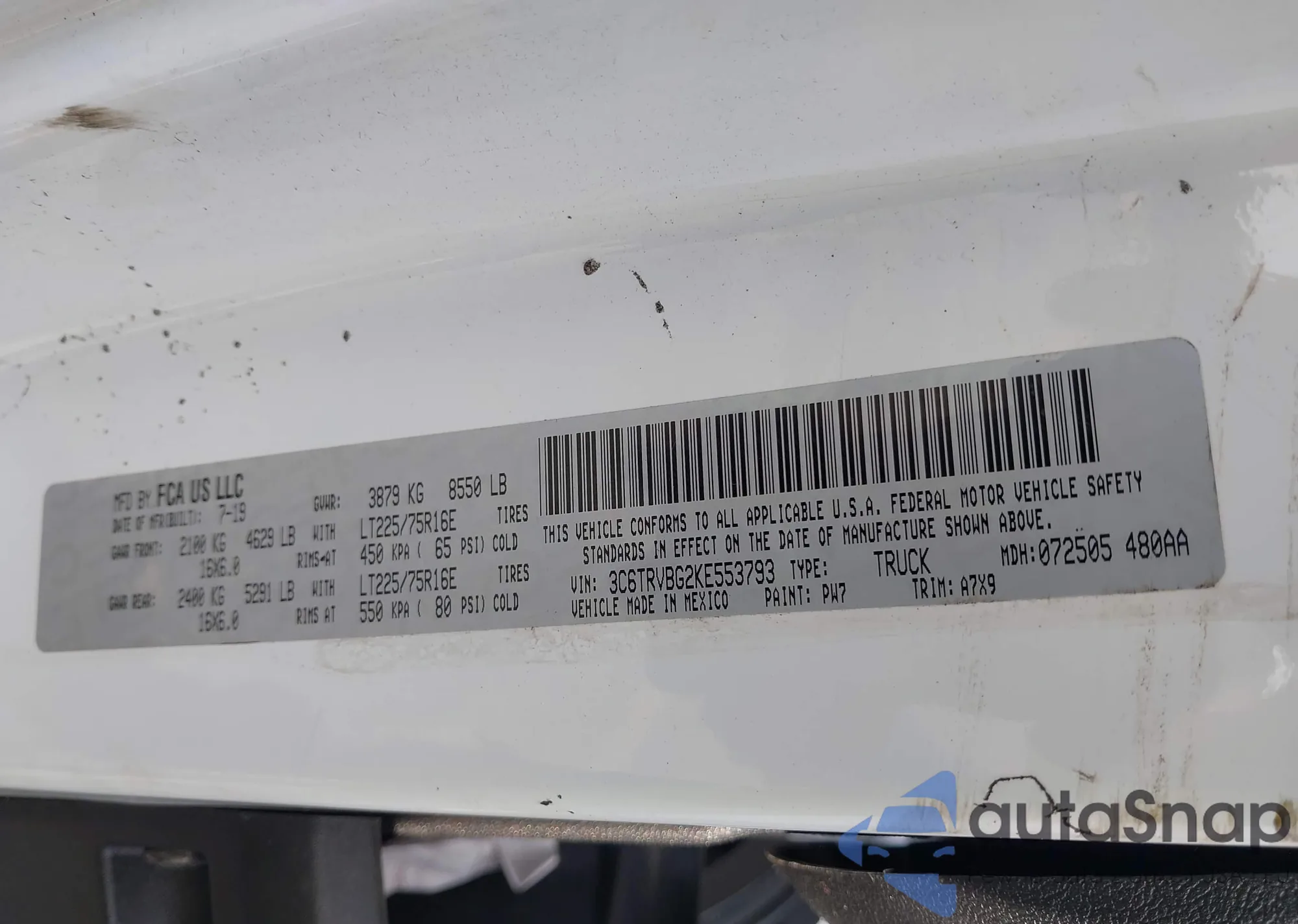 VIN: 3C6TRVBG2KE553793