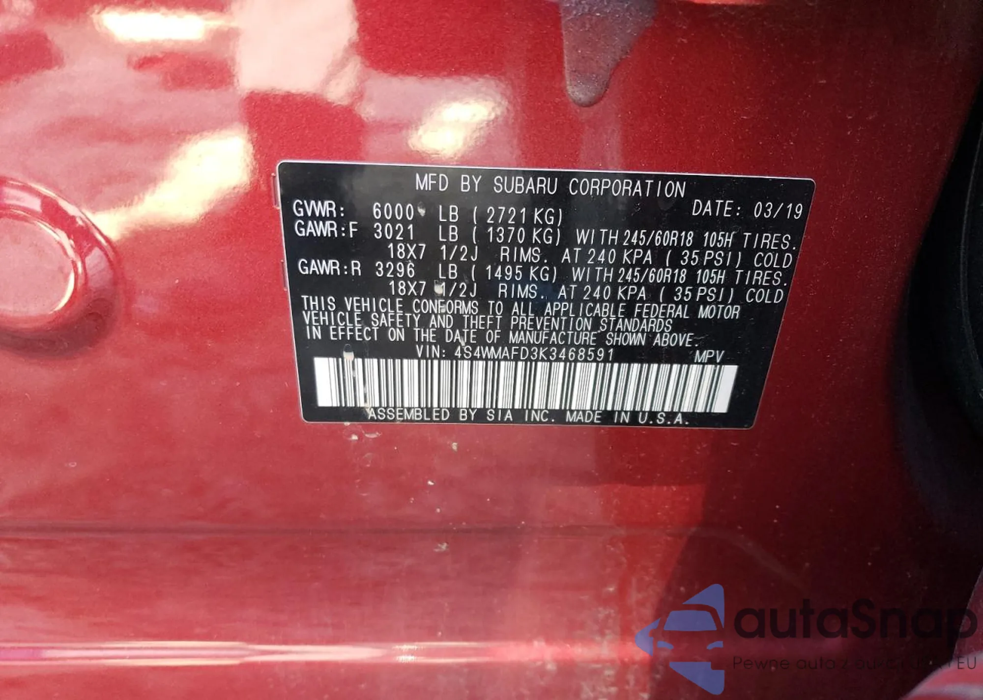 • VIN: 4S4WMAFD3K3468591