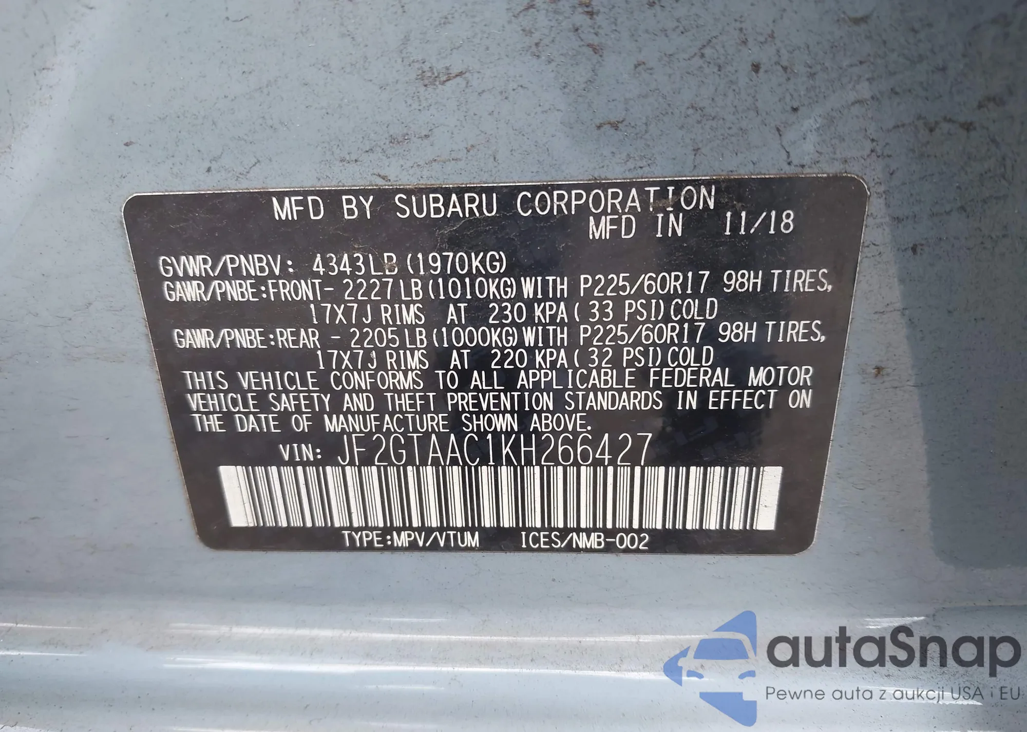 • VIN: JF2GTAAC1KH266427