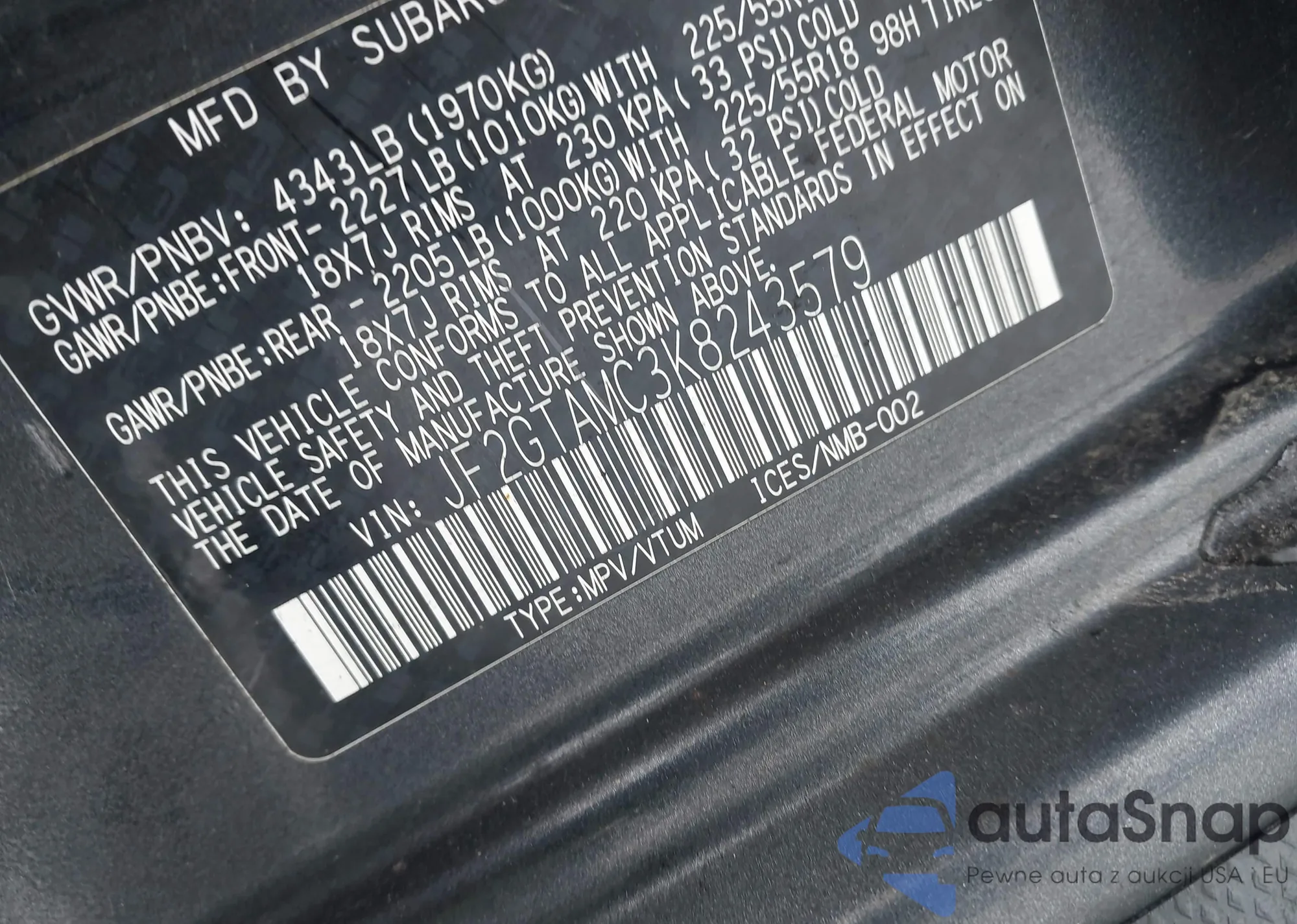 • VIN: JF2GTAMC3K8243579