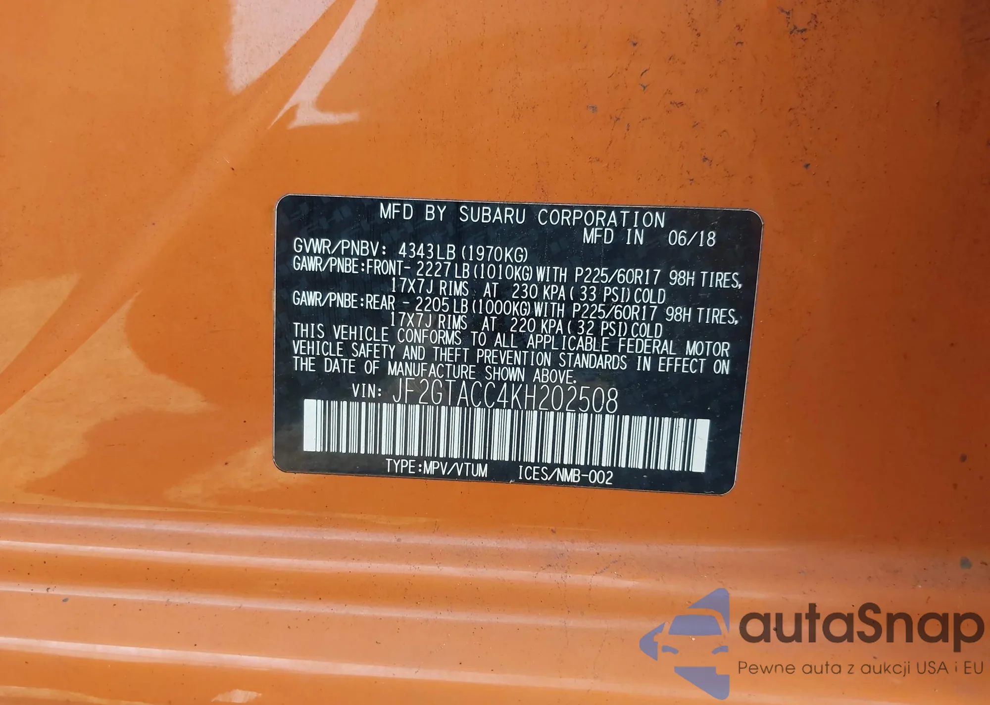 VIN: JF2GTACC4KH202508