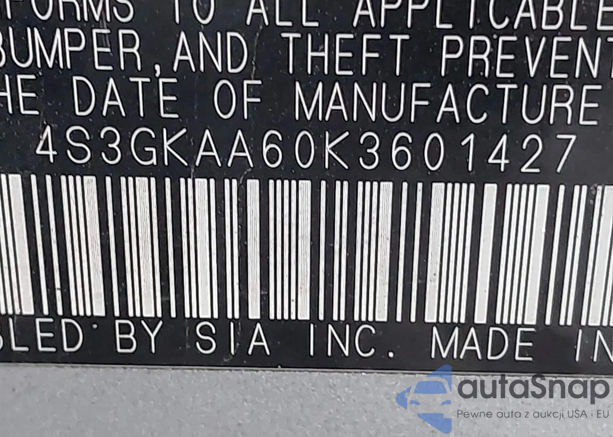 VIN: 4S3GKAA60K3601427