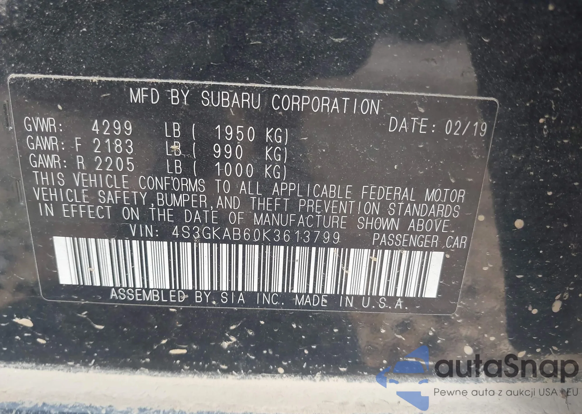 VIN: 4S3GKAB60K3613799