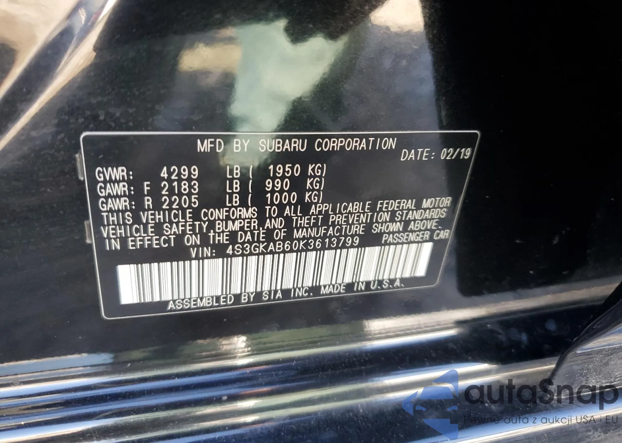 VIN: 4S3GKAB60K3613799