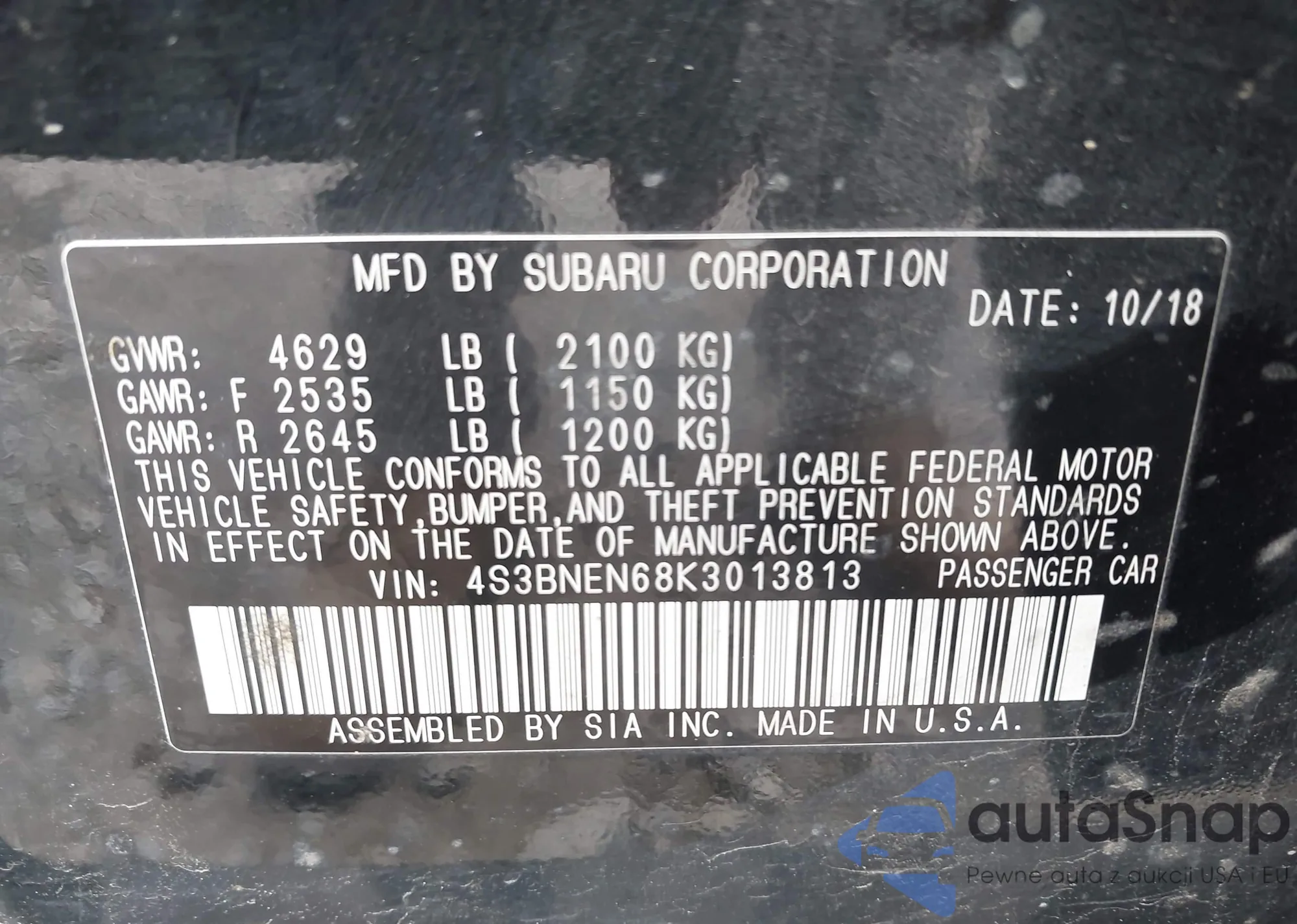 VIN: 4S3BNEN68K3013813