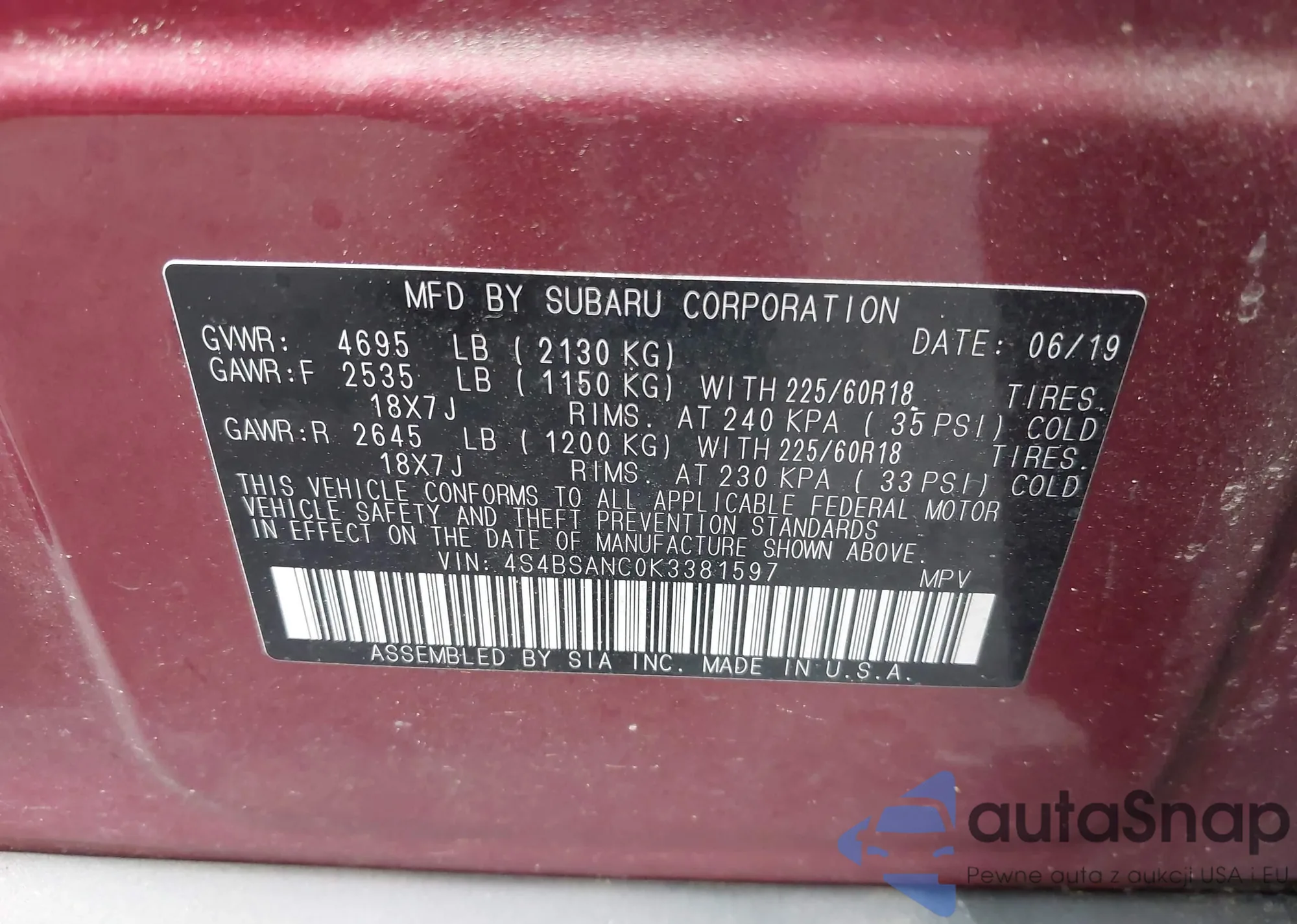 VIN: 4S4BSANC0K3381597