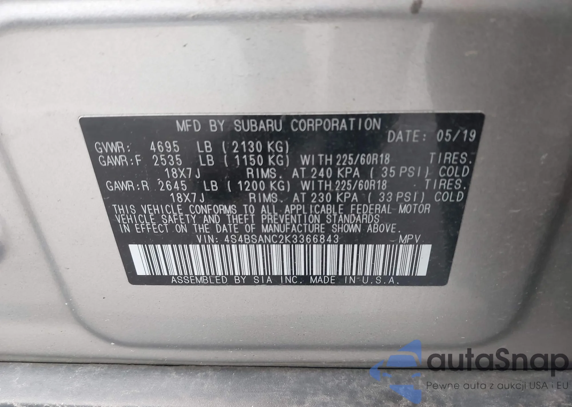 VIN: 4S4BSANC2K3366843