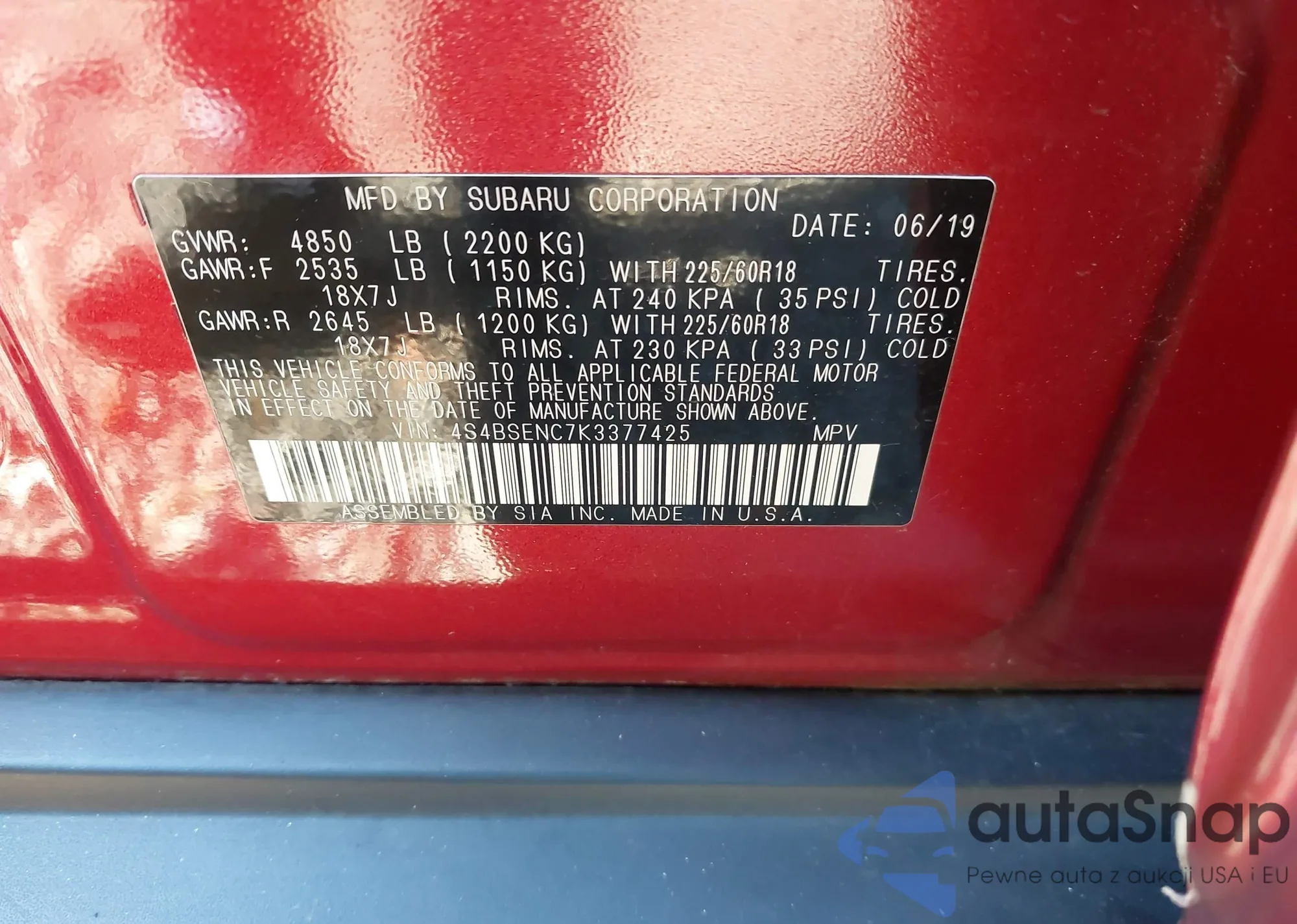 VIN: 4S4BSENC7K3377425