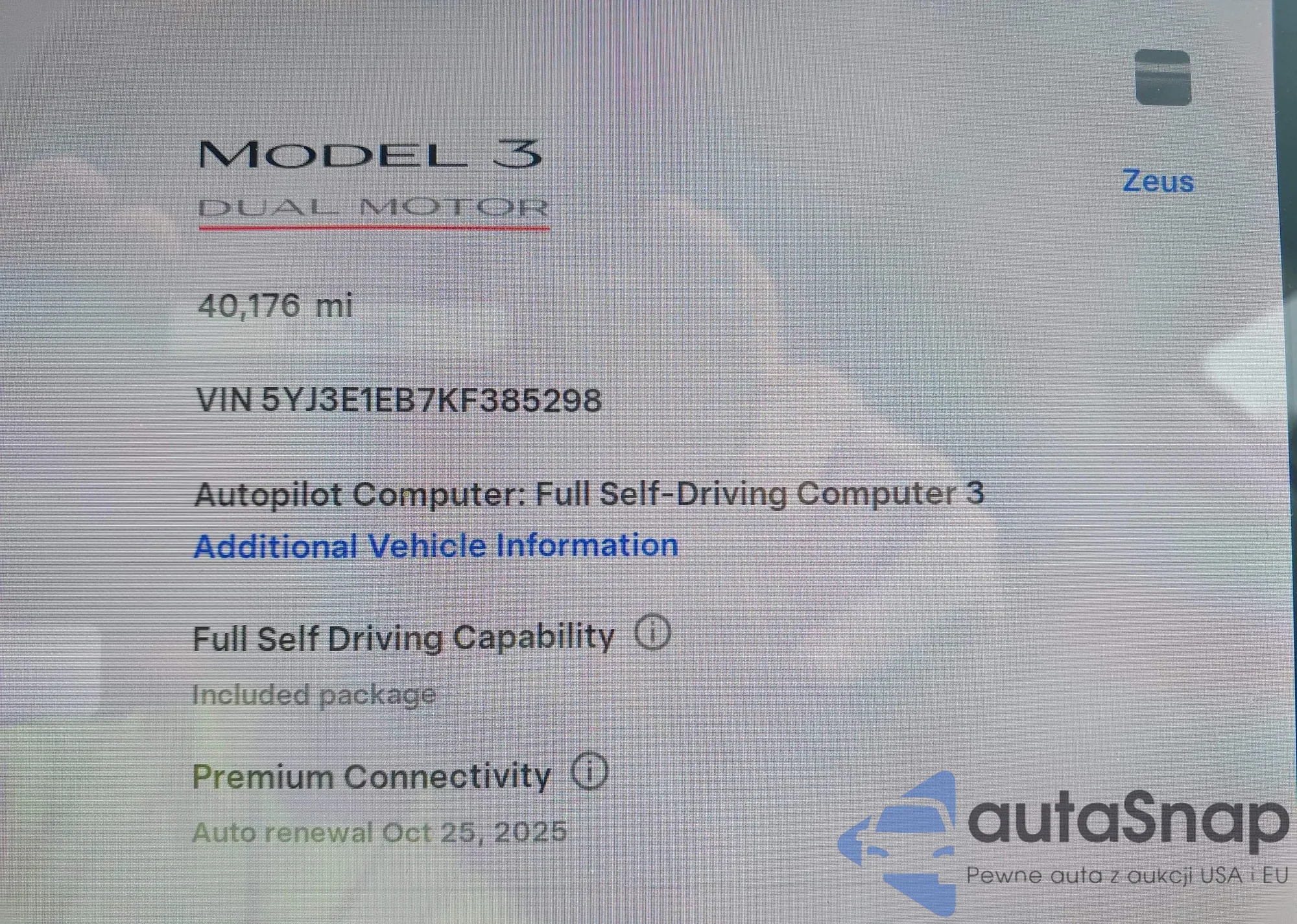 VIN: 5YJ3E1EB7KF385298