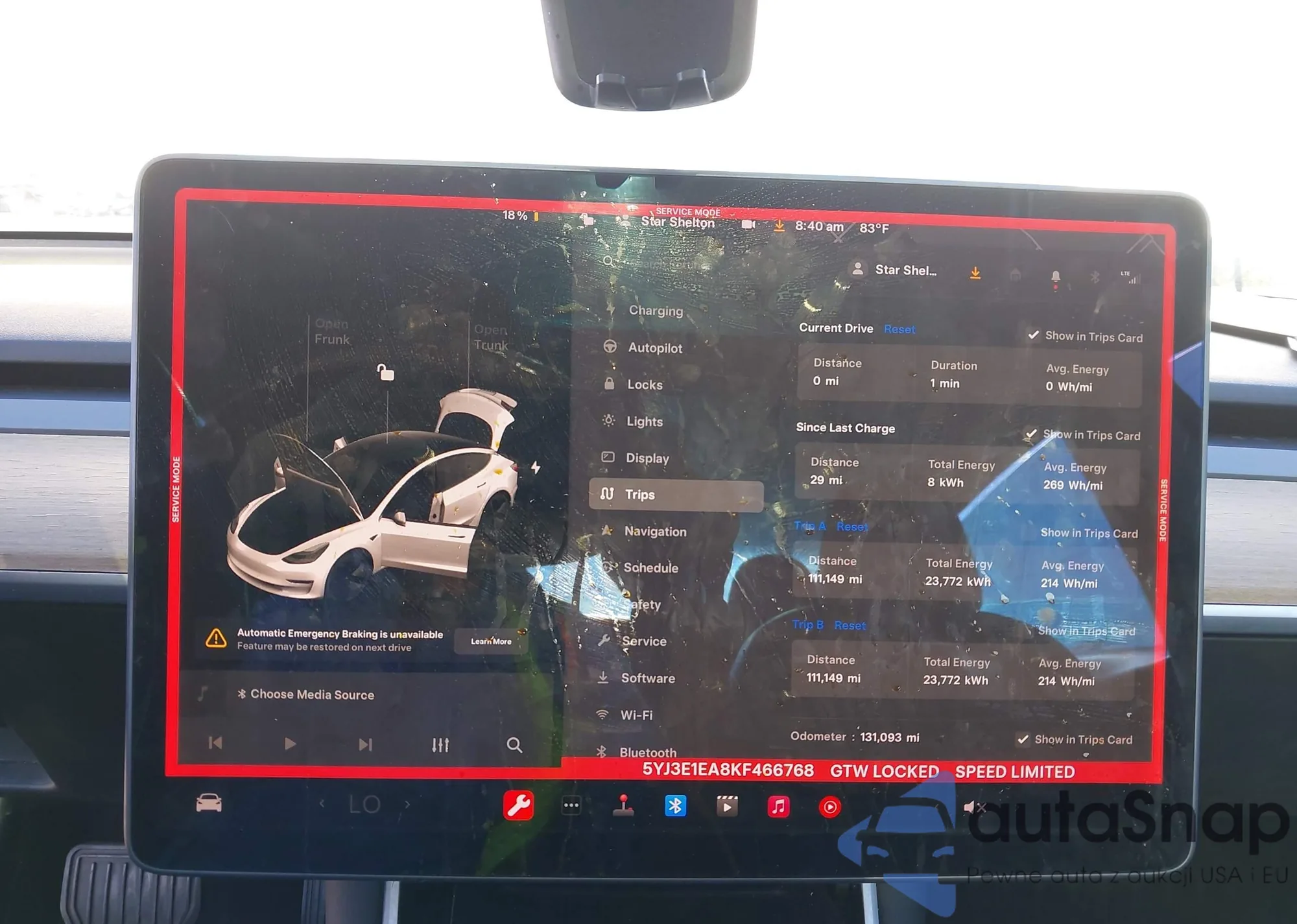 VIN: 5YJ3E1EA8KF466768