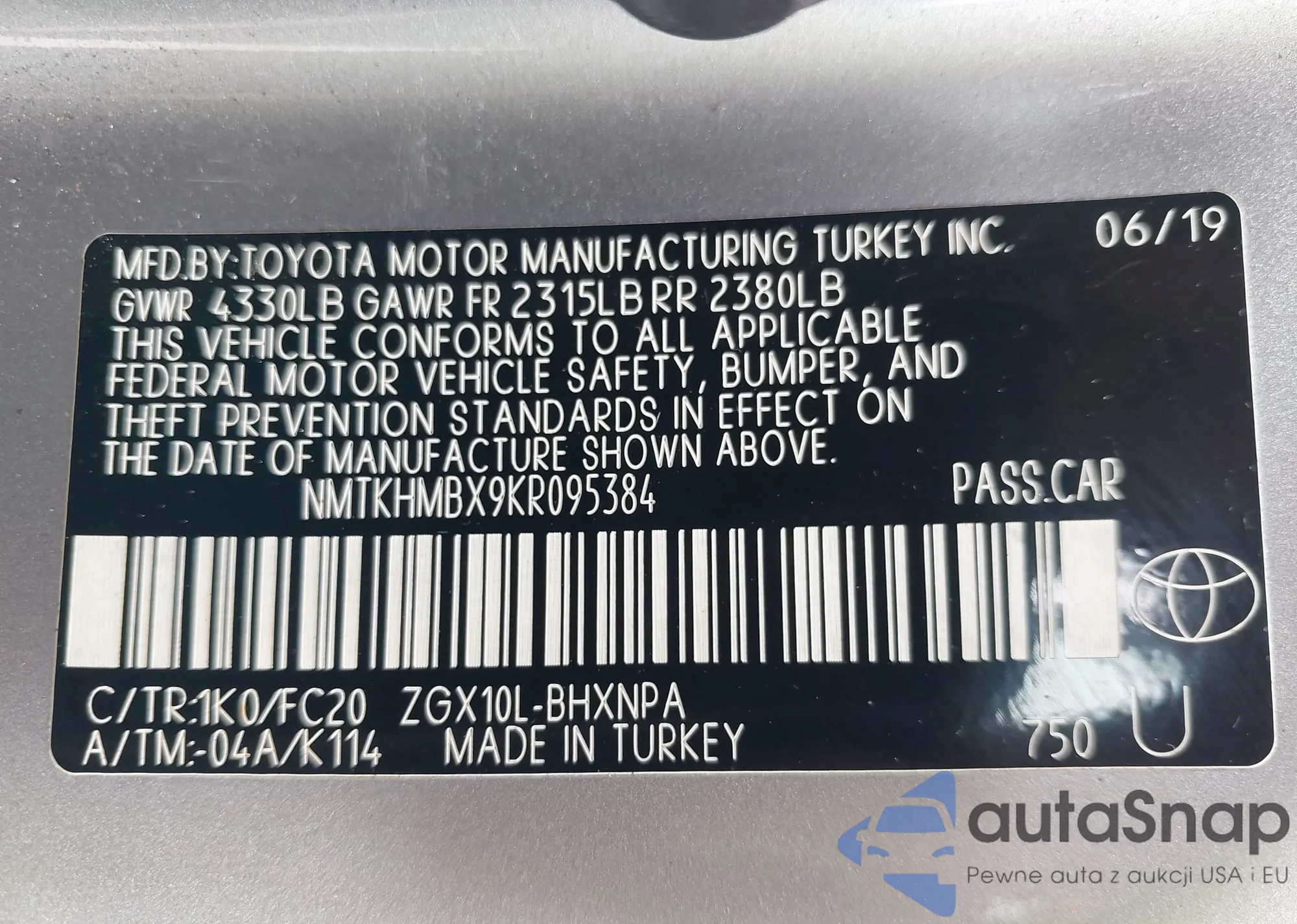 VIN: NMTKHMBX9KR095384