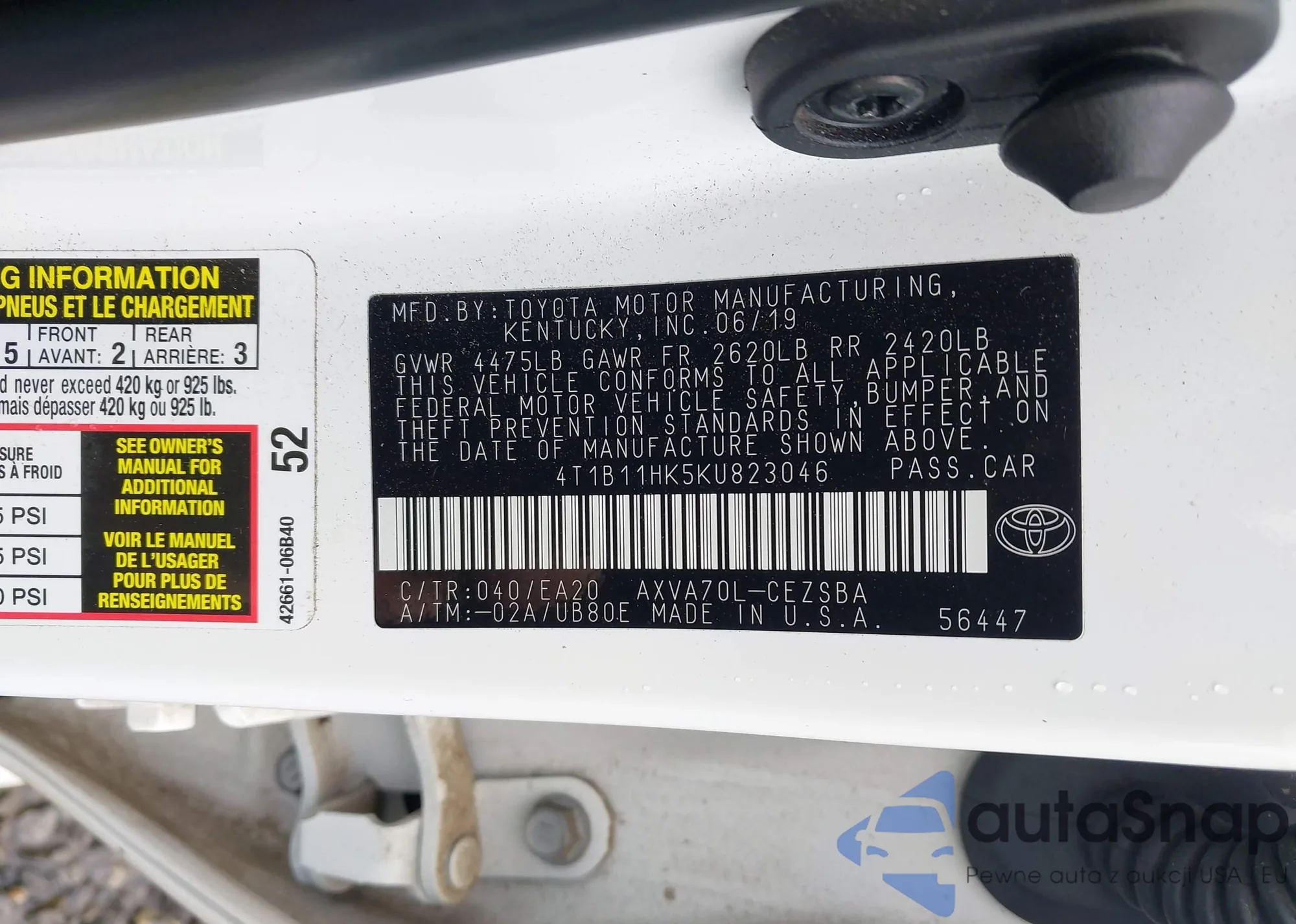 VIN: 4T1B11HK5KU823046