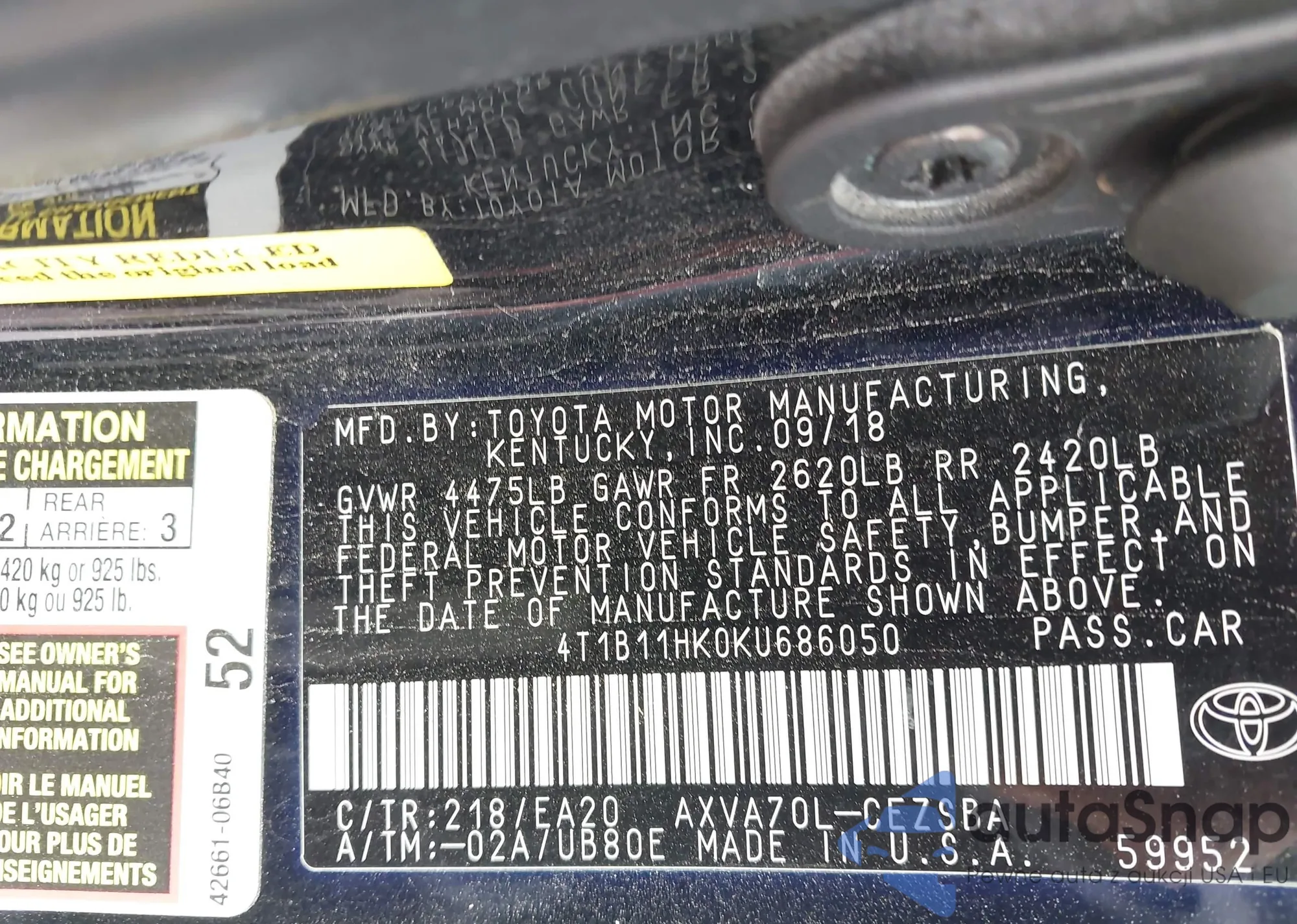 VIN: 4T1B11HK0KU686050