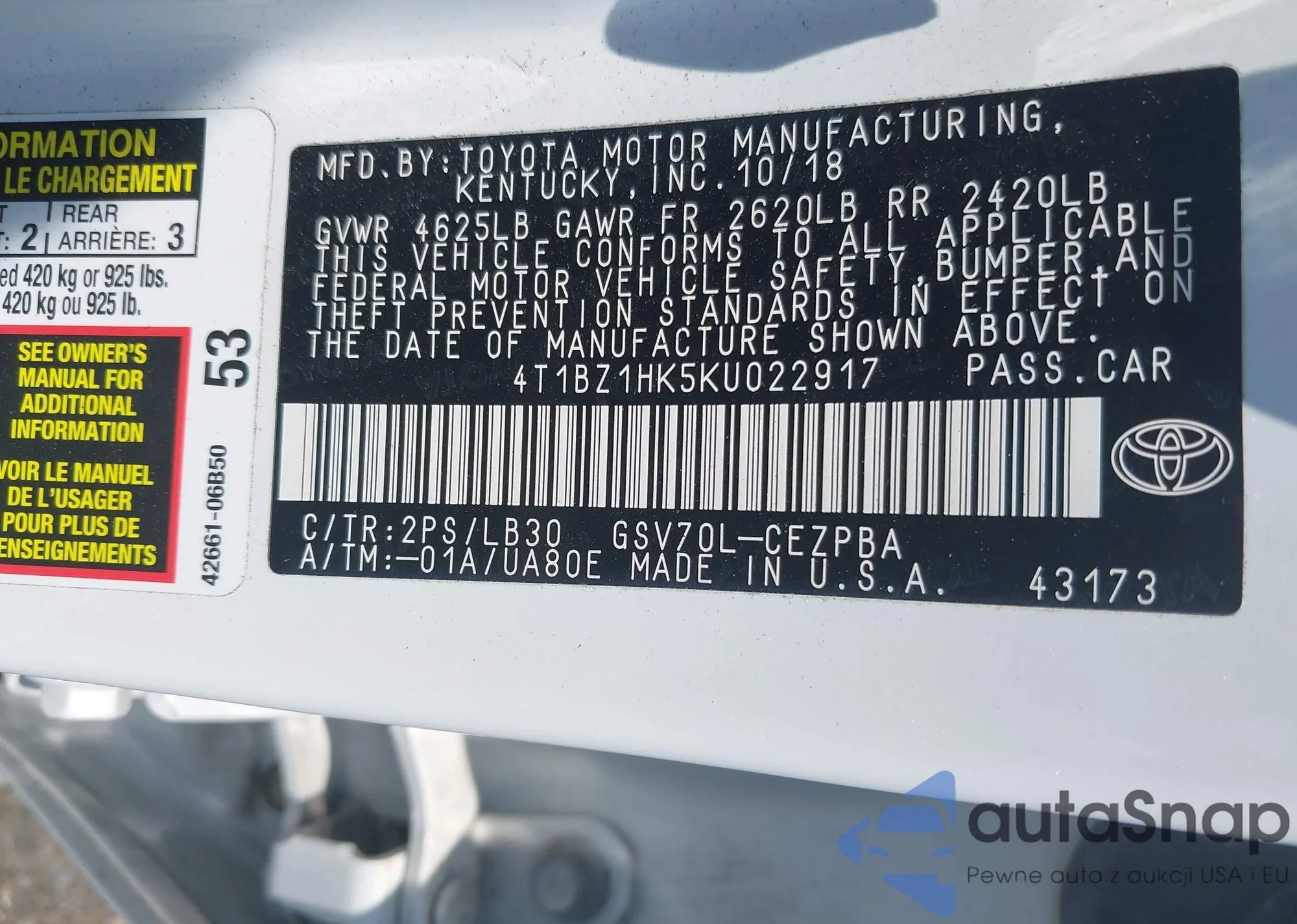 VIN: 4T1BZ1HK5KU022917
