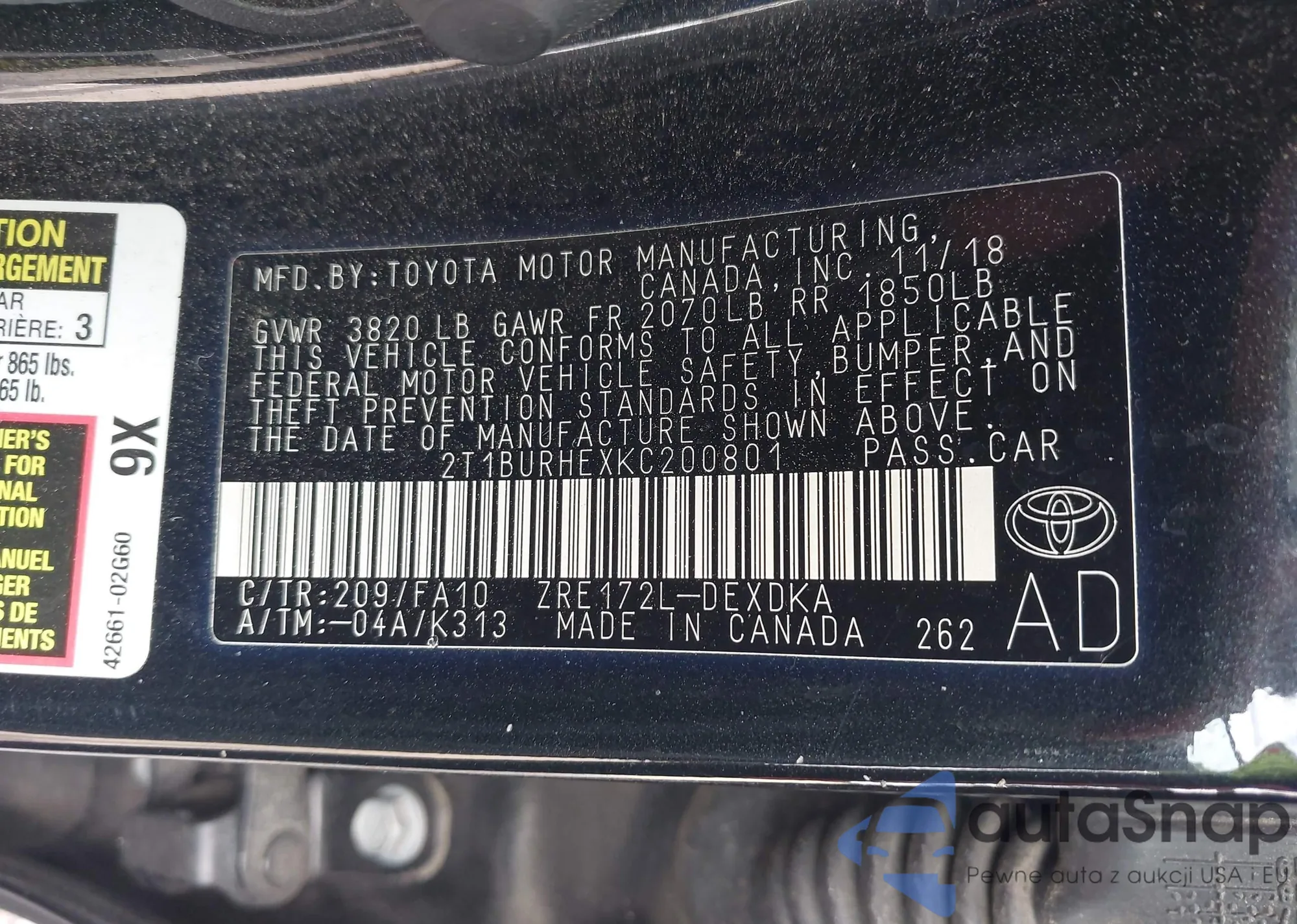 VIN: 2T1BURHEXKC200801