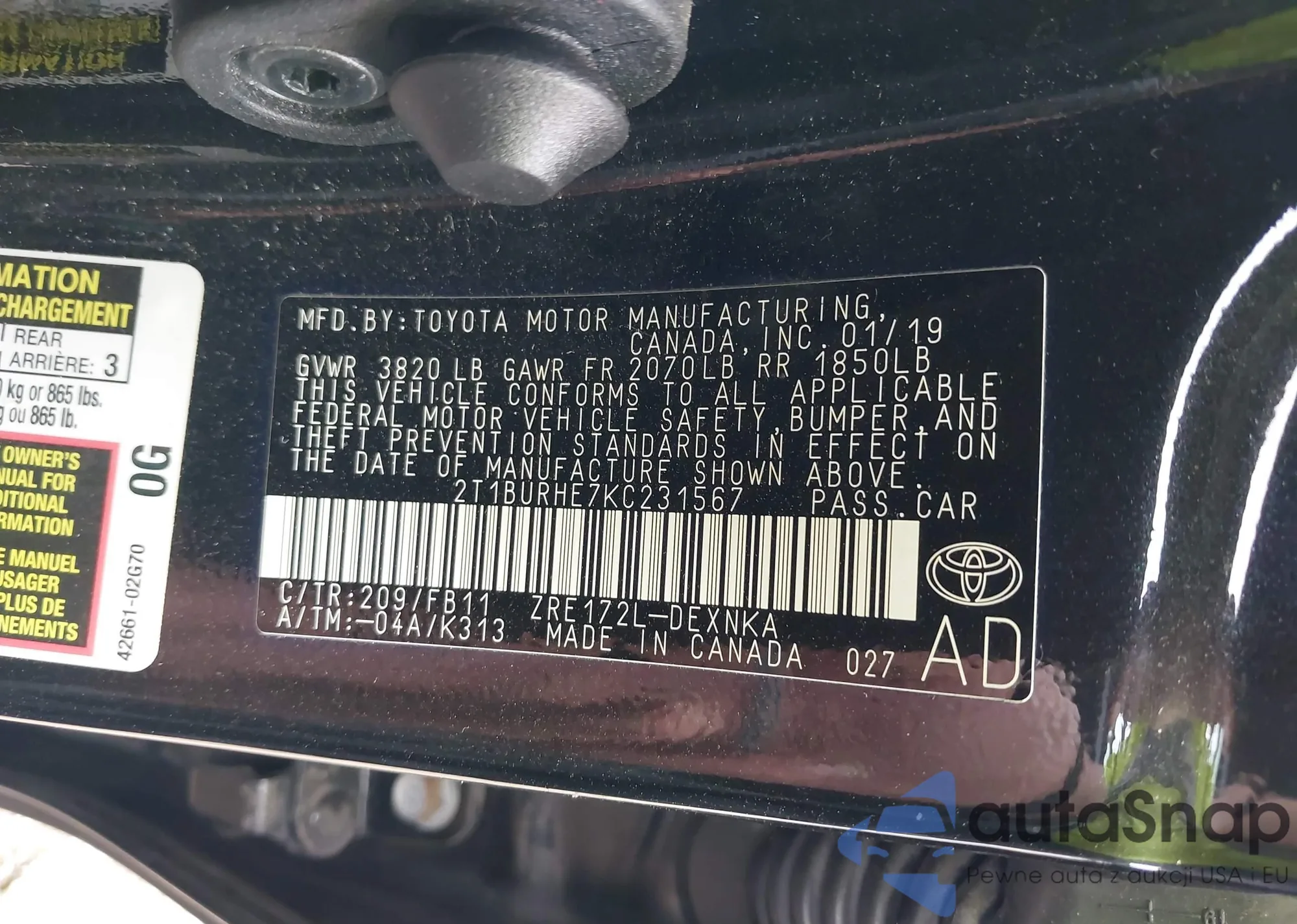 VIN: 2T1BURHE7KC231567