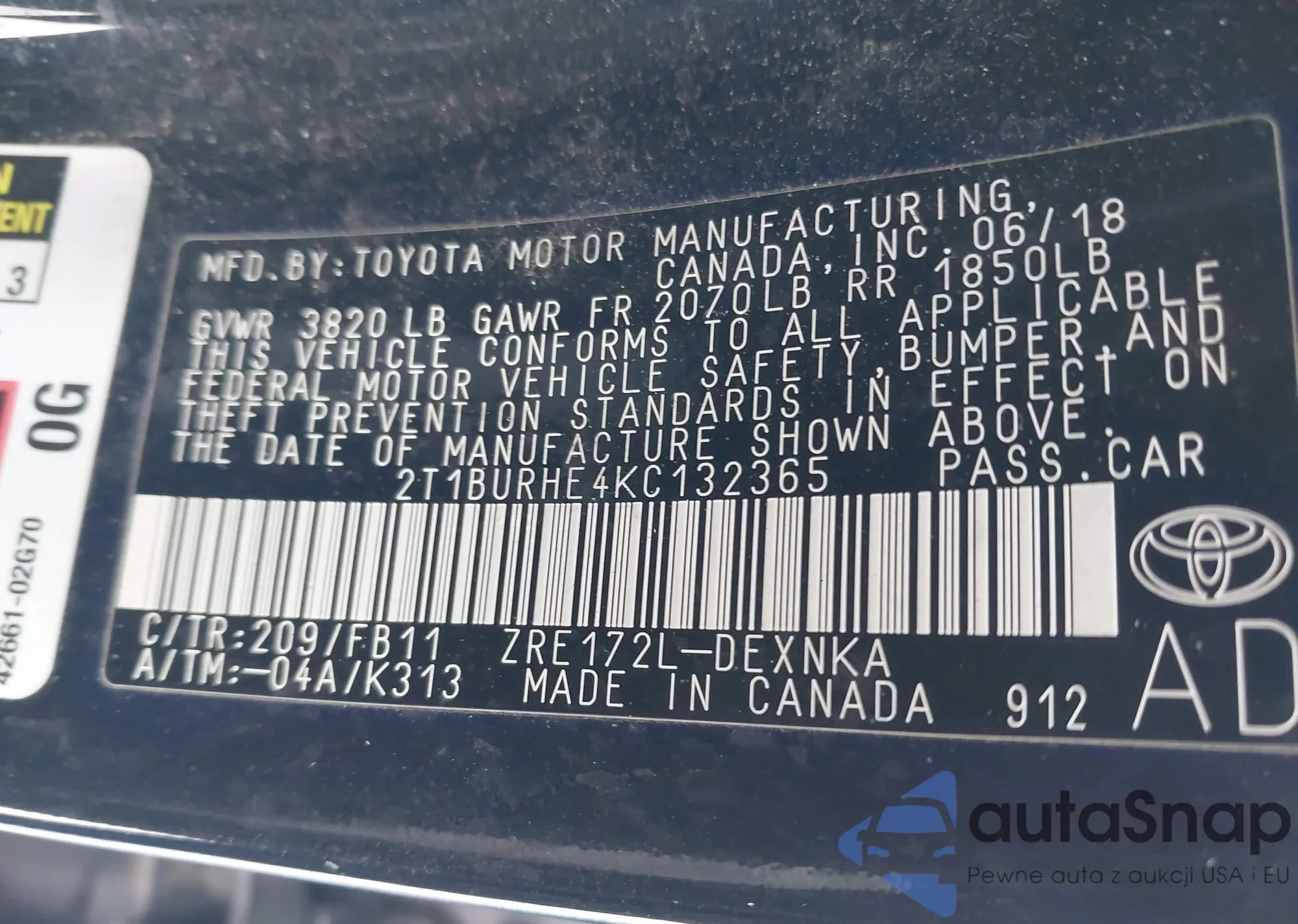 The car Toyota Corolla 2019 (VIN 2T1BURHE4KC132365) has not been auctioned before. The documents are clean, and the mileage matches or is below the market average. Sold by an insurance company – we recommend purchase. Delivery to the port will take approx. 6–8 weeks.