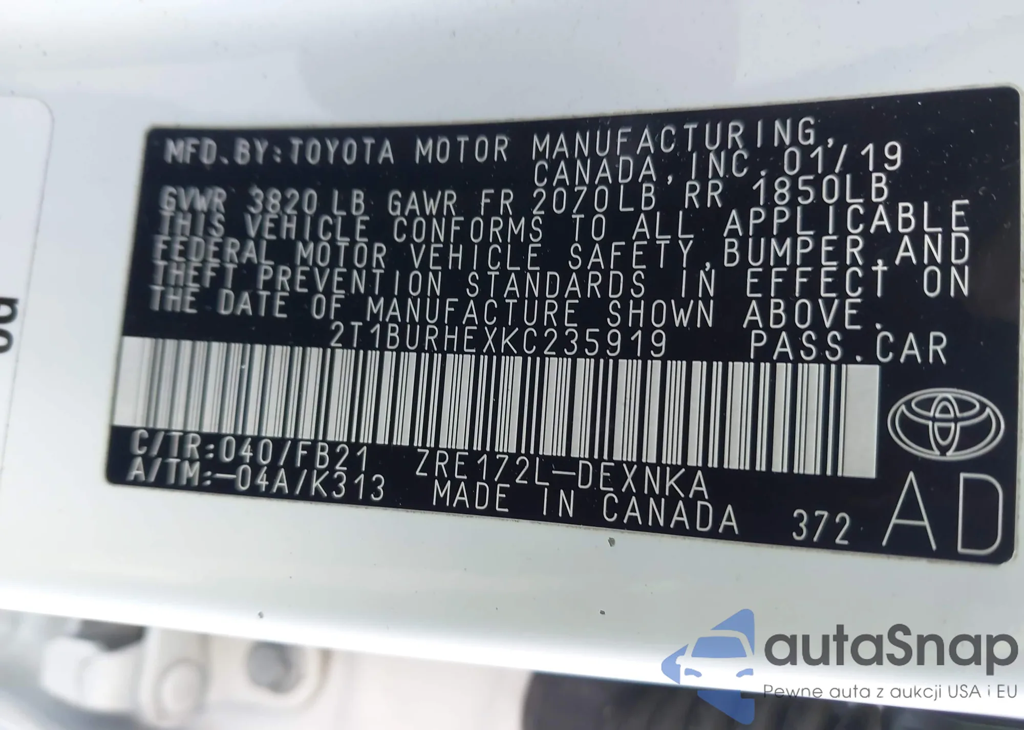 VIN: 2T1BURHEXKC235919