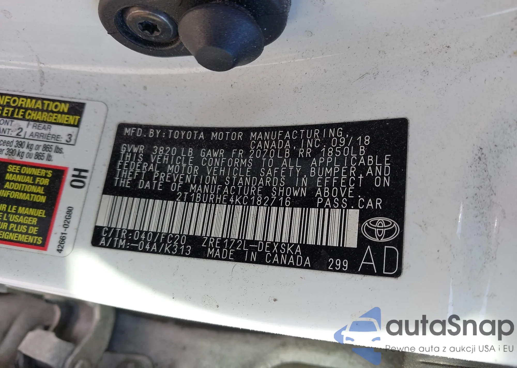 The car Toyota Corolla 2019 (VIN 2T1BURHE4KC182716) has not been auctioned before. The documents are clean, and the mileage matches or is below the market average. Sold by an insurance company – we recommend purchase. Delivery to the port will take approx. 6–8 weeks.