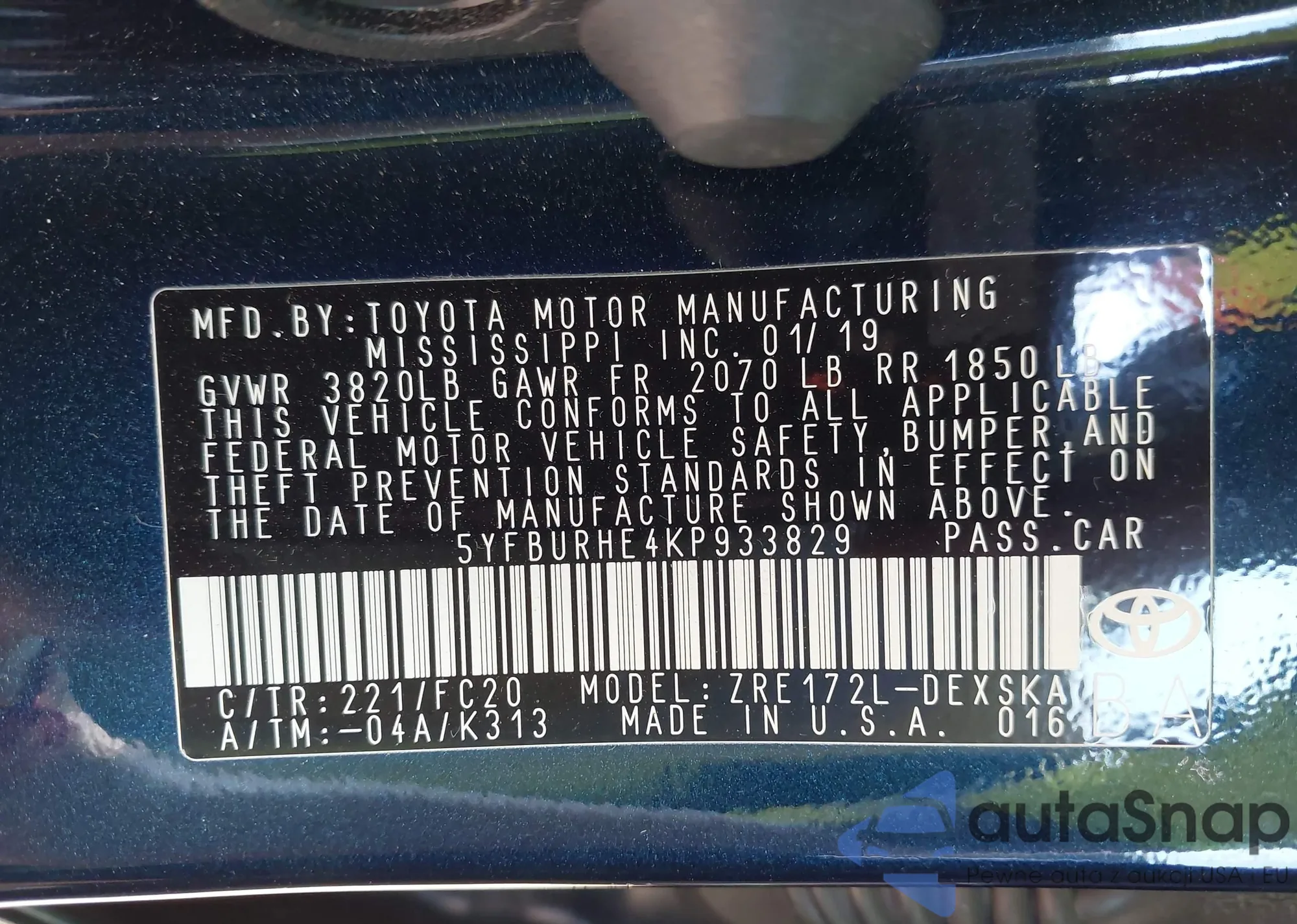 VIN: 5YFBURHE4KP933829