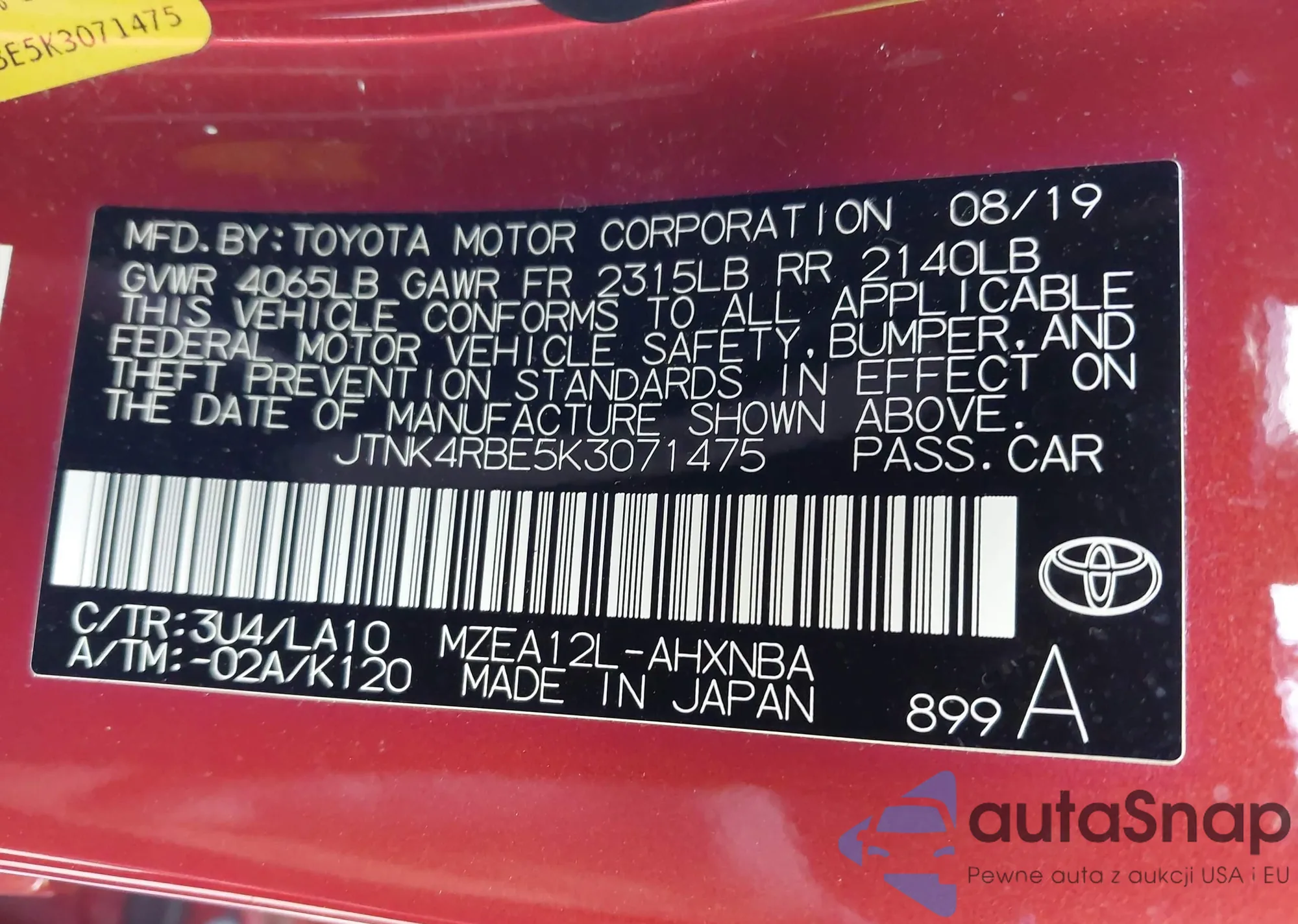 VIN: JTNK4RBE5K3071475